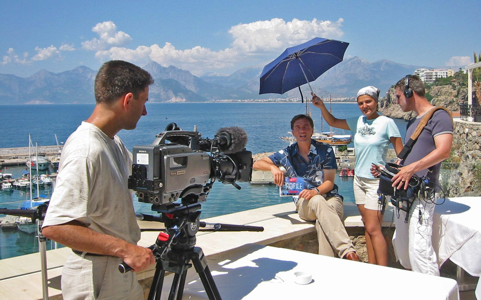 Mer haba! Guten Tag aus dem türkischen Ferienmekka Antalya. Fast 40 Grad heiß, keine Minute Regen und immer kurz vor dem Sonnenstich: Das PROFILE-Team zeichnet eine Sendung vor Ort für die Sommer-Reihe auf (Sendung am 26. August 2002 um 21.20 Uhr). Schon nach zwei Minuten allerdings ist das Hemd von Moderator Scheider patschnass – macht aber nix – die Kamera läuft trotzdem!