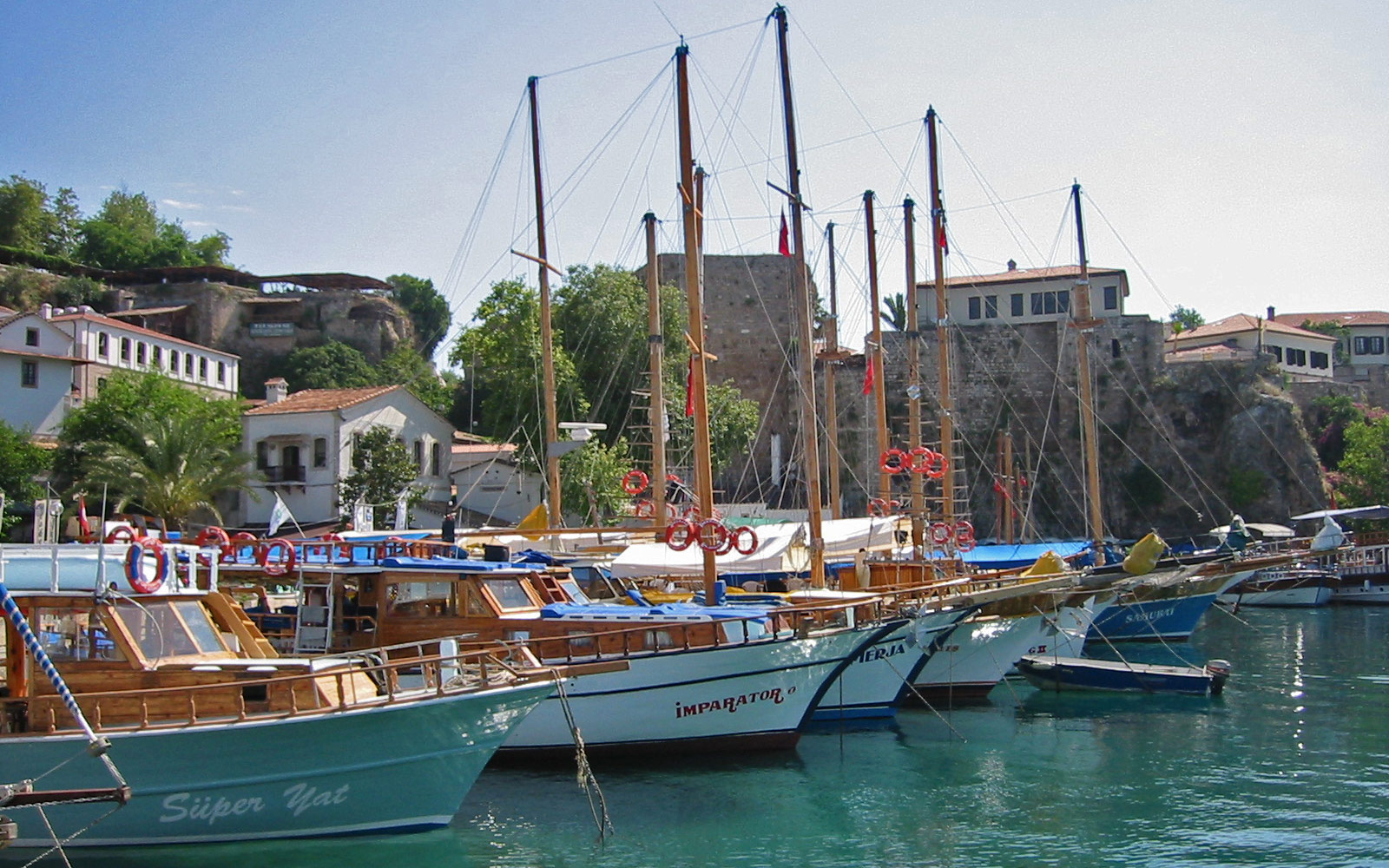 Von wegen Urlaubsreise auf Senderkosten! Kaum landet das Team, stehen wir schon 30 Minuten später am Hafen und drehen die ersten Moderationen. Bei der Hitze braucht es allerdings ein paar Anläufe. Willkommen in Antalya! Wenigstens befinden wir uns uhrzeittechnisch schon in den Abendstunden – da brütet die Hitze zwar noch, aber die Sonne hat sich schon hingelegt…