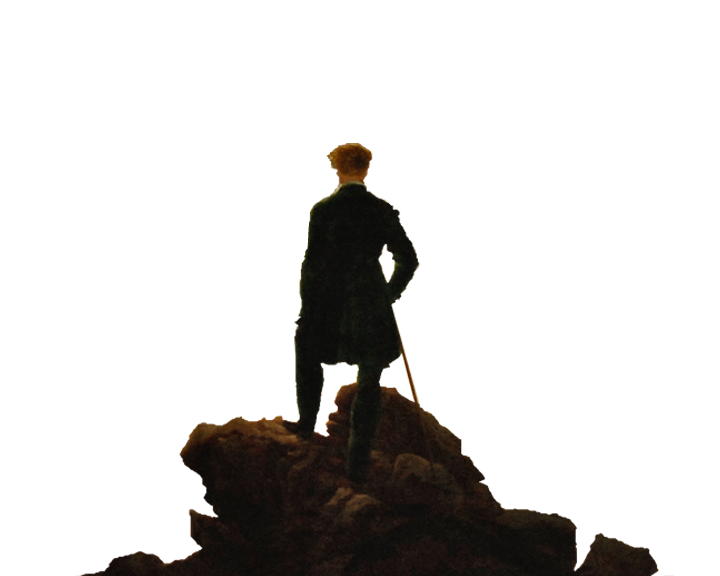 Hamburger Kunsthalle. Erster Stock, erster Saal, erste Begegnung mit dem Gipfelstürmer. Du erkennst ihn schon aus der Ferne. Denn der Wanderer nistet sich so schnell und heftig in Deinen Kopf ein wie die Monroe über dem U-Bahnschacht oder die Zunge von Albert Einstein. Liefen alle Gemälde der Kunstgeschichte in einer Sekunde wie ein Bildgewitter über eine Leinwand – Deine Sinneszellen würden den Wanderer bewusst herausfischen. Da war er!
