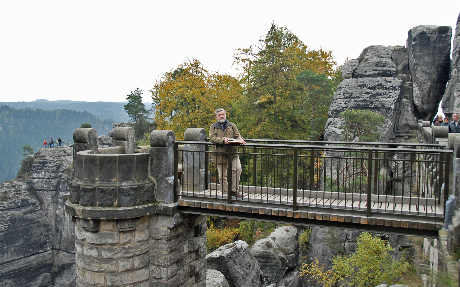 Frank Richter führt uns auf die Bastei - mit Blick auf ein Felsenmeer