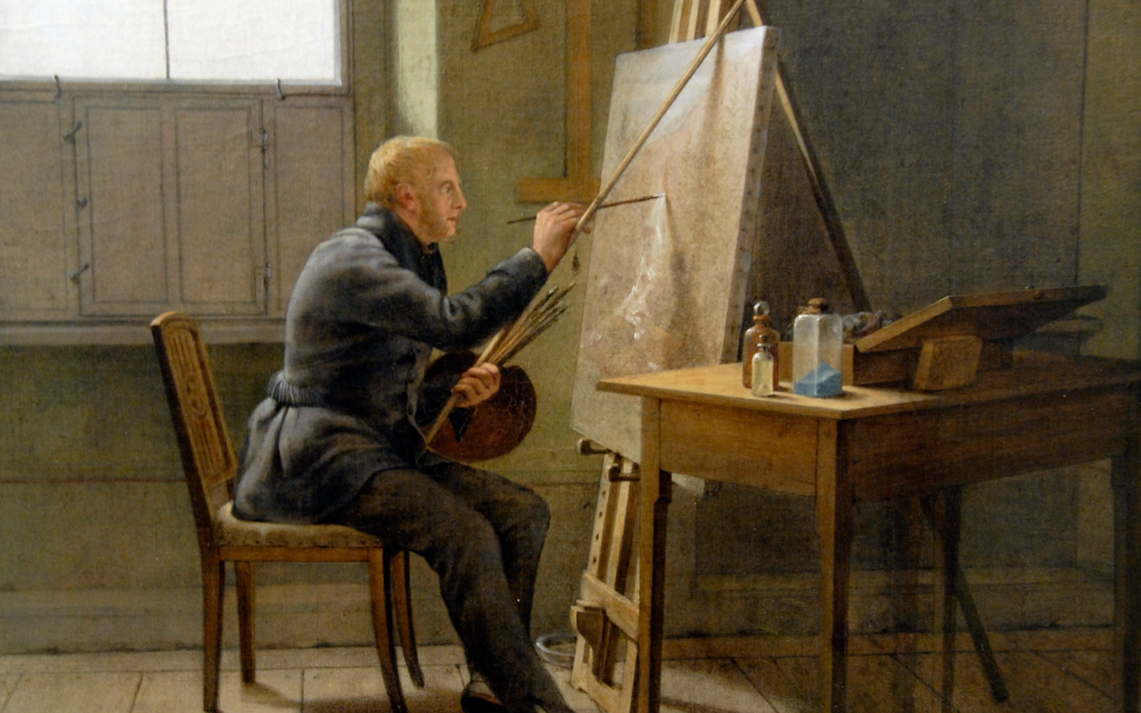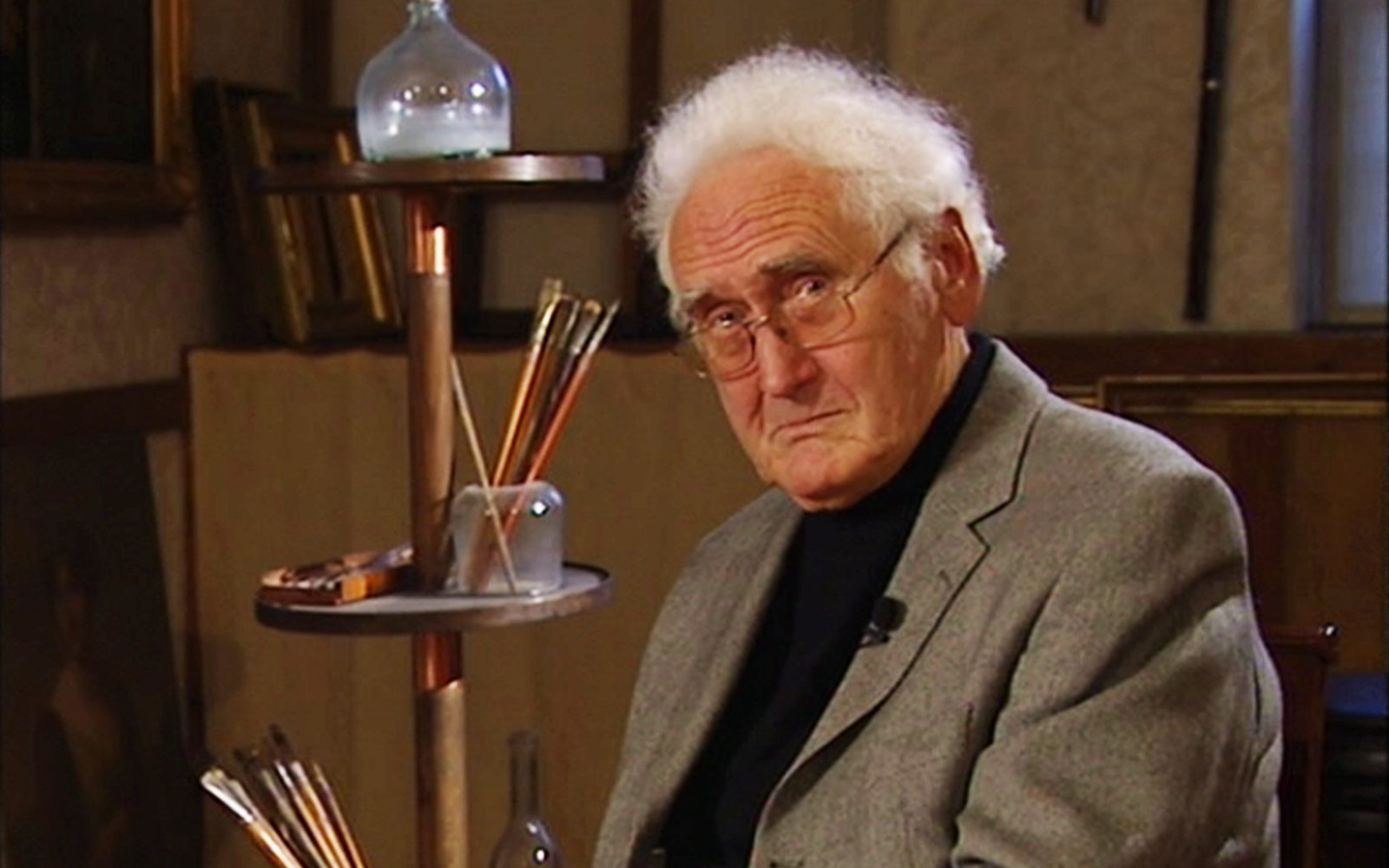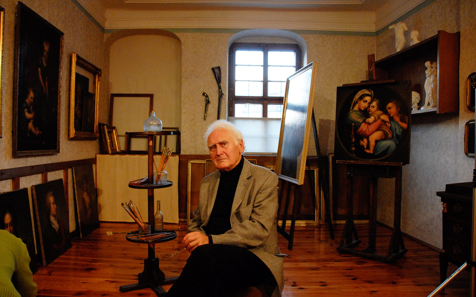 Im Atelier des Dresdner Malers nimmt Professor Neidhart Platz.