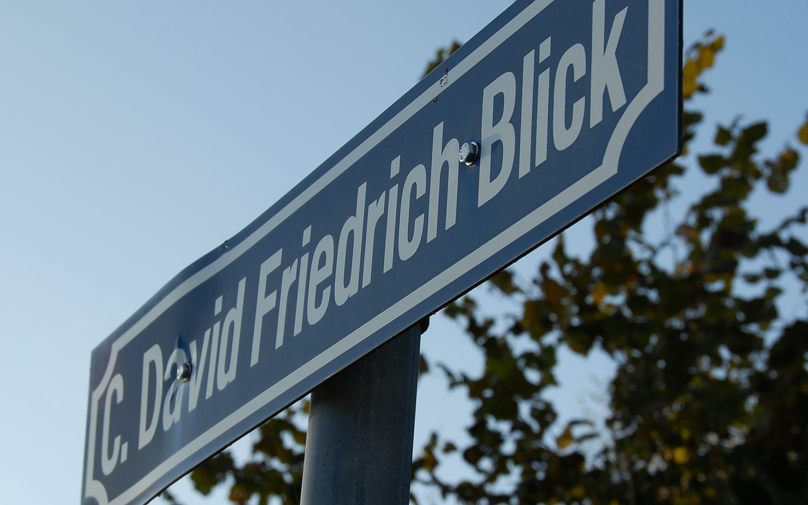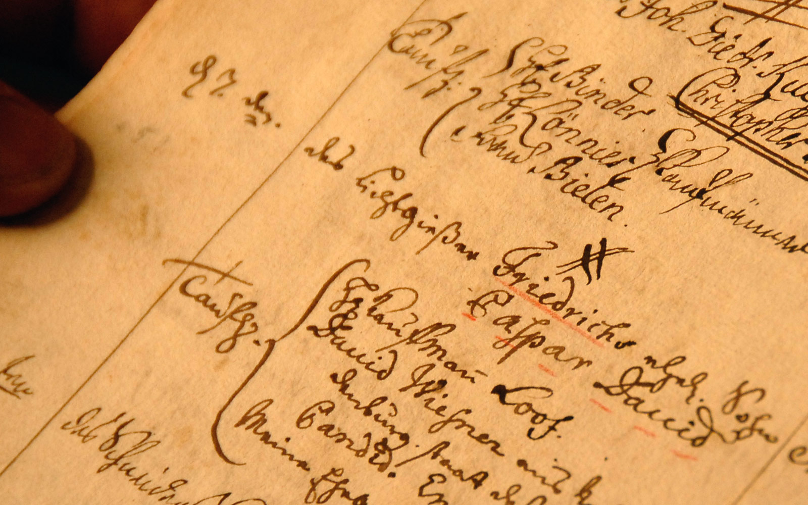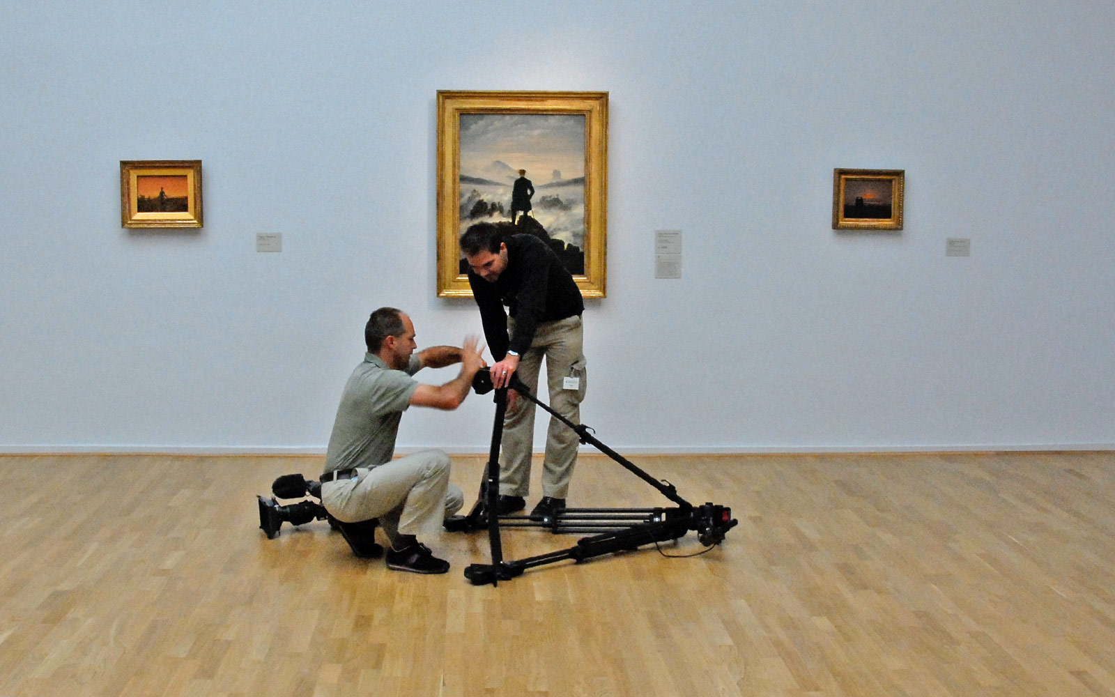 Eins Sieben Sieben Vier. Das Geburtsjahr von Caspar David Friedrich in Greifswald. Der Vater: Ein Seifenmacher. In der Kirche St. Nikolai stehen im Tresor die Taufbücher aus den vergangenen Jahrhunderten. Und in einer Zeile stockt uns der Atem: 5. September 1774 Caspar David Friedrich – steht mit alter Tinte dort geschrieben. Die Geschichte haucht den vergilbten Seiten plötzlich Leben ein. Schwebend lassen wir die Steadicam-Kamera durch den Dom wandern – ein „magic moment“ entsteht.