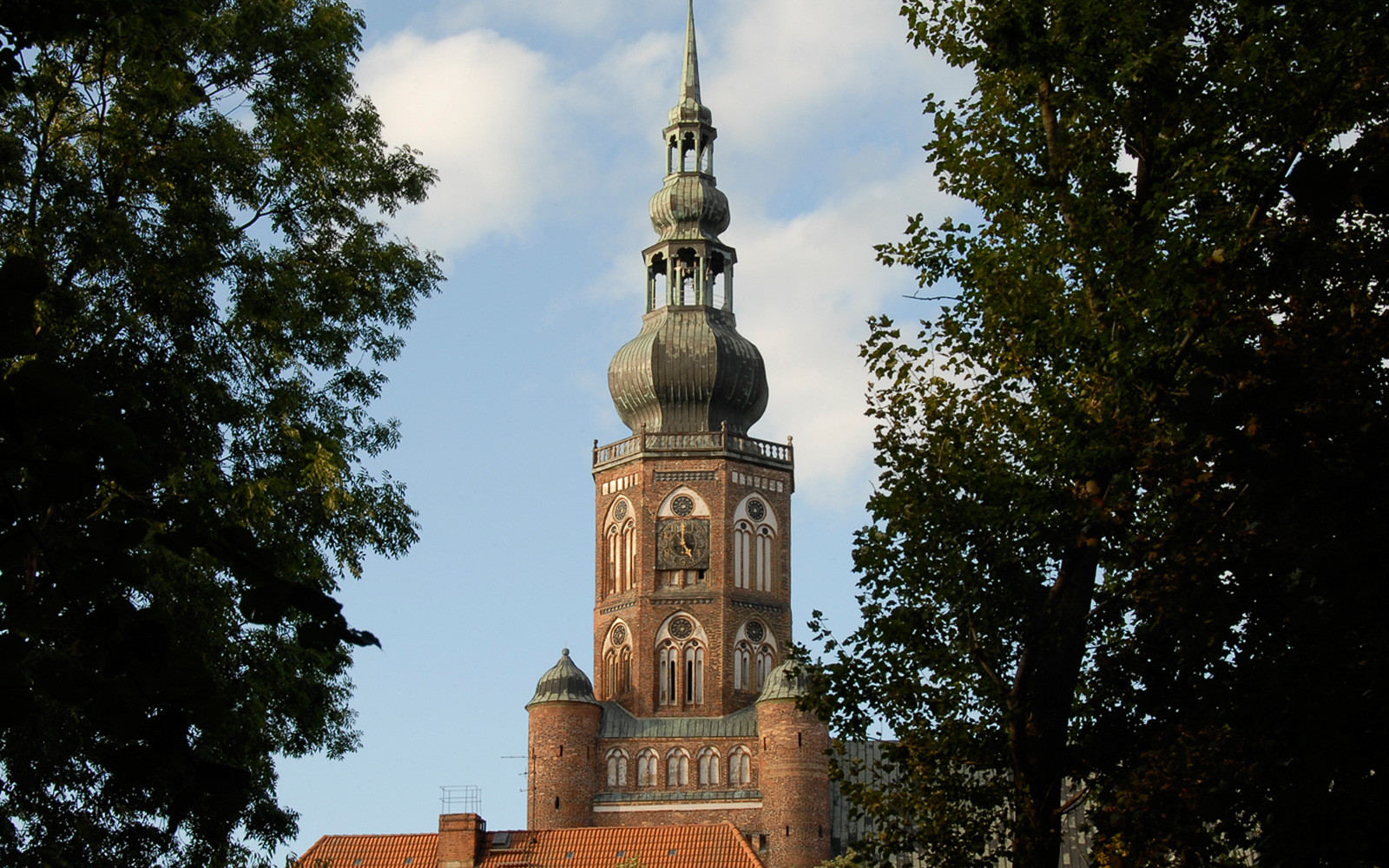 Postkartenblick auf den Nikolai-Dom in Greifswald