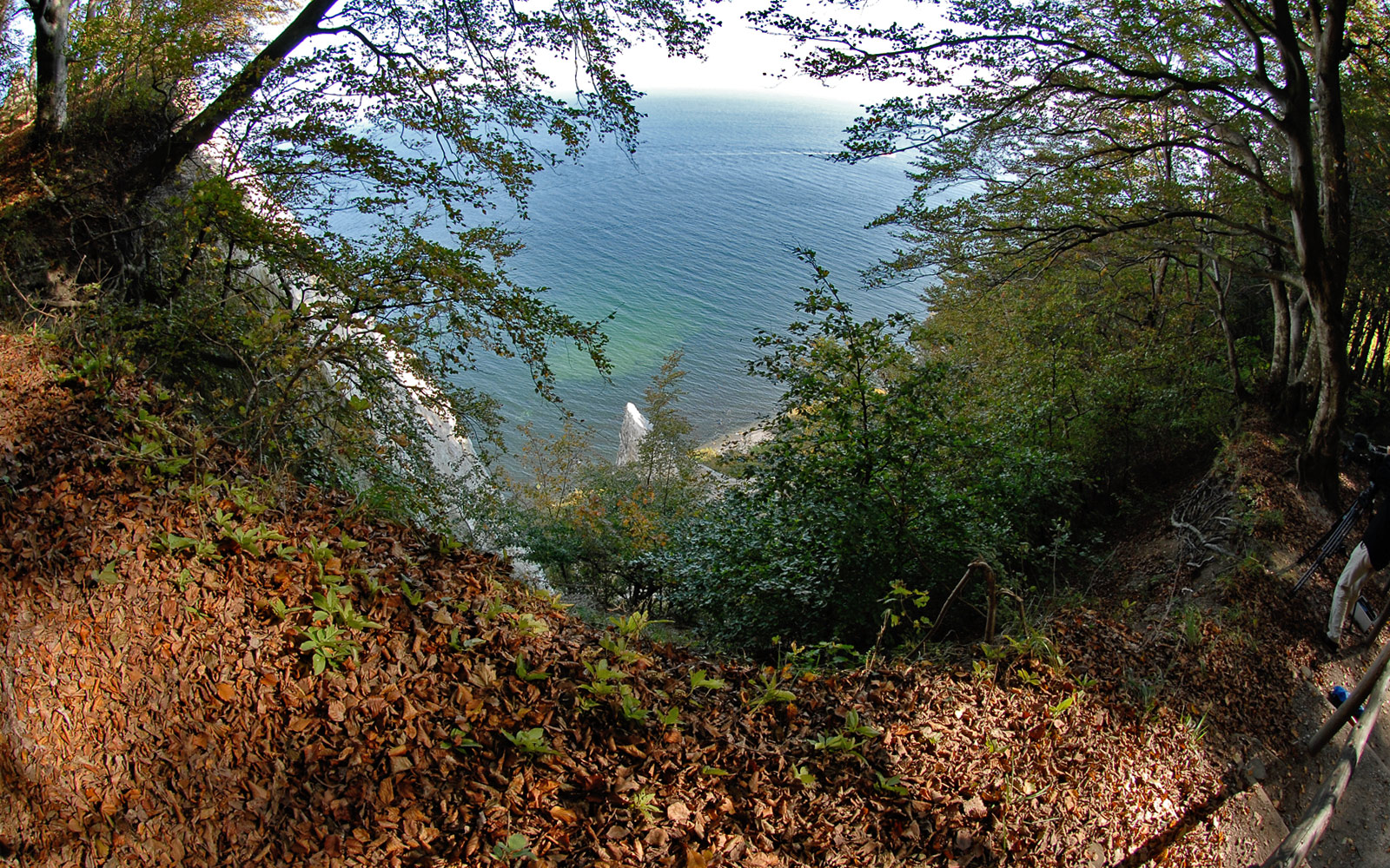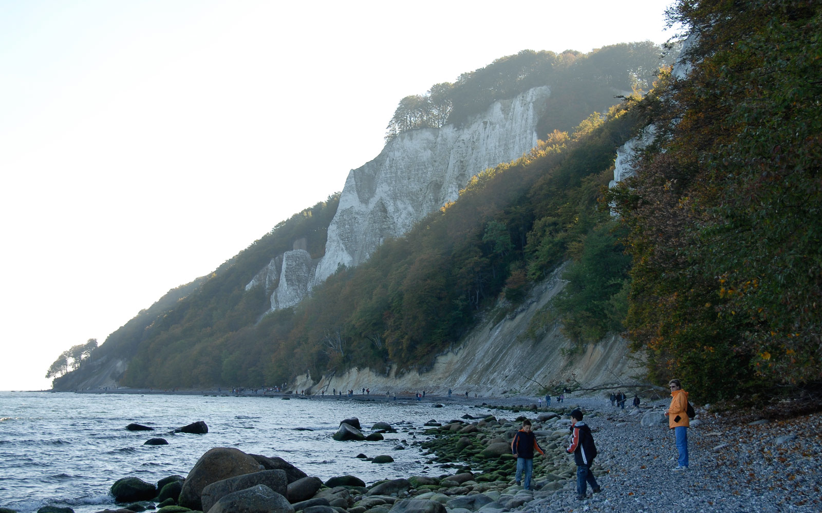 Über eine endlose Holztreppe schleppen wir Kamera und Stativ hinunter zum Strand. Und schon verschwimmen die Caspar-Bilder mit den pittoresken Felsen im Ostsee-Wasser. Der Zauber geht schon wieder los. Tuuut. Ein Kutter fährt durchs Bild. Möwen lachen. Auge, Ohr und Nase saugen alles auf. Gibts was Schöneres?