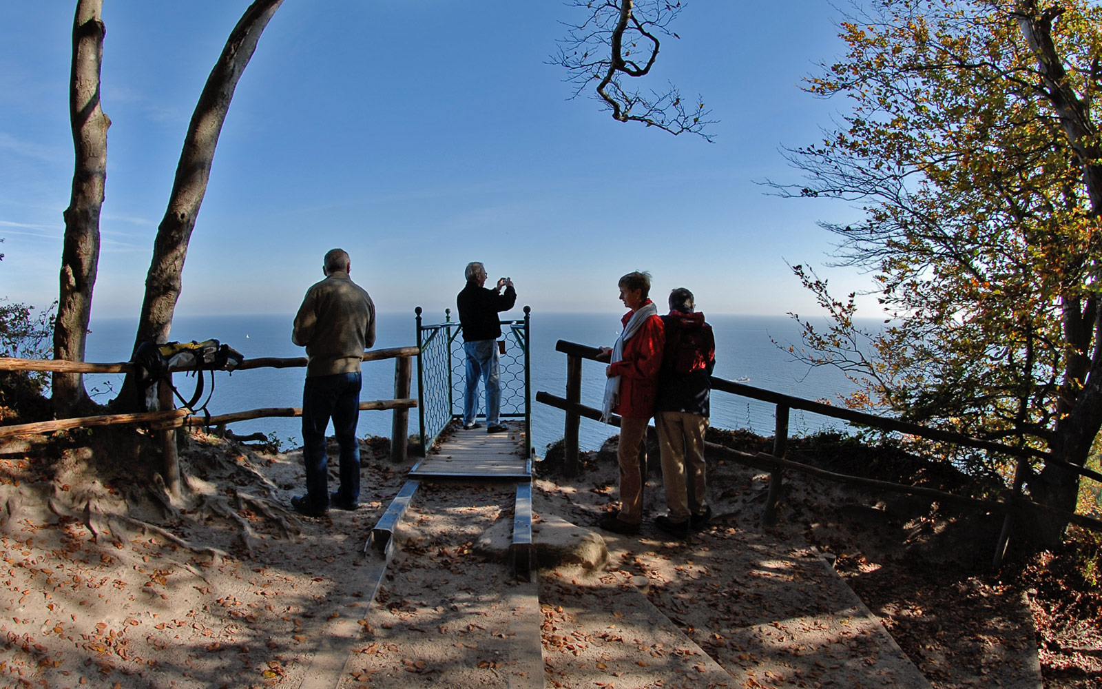 Da haben wir schon XXL-Glück. Am Drehtag auf Rügen liegt die Insel im schönsten Sonnenlicht. An der Victoria-Aussichtsplattform gehts steil bergab – die Kameralinse darf sich hier austoben. Die weißen Kreidefelsen strahlen in die Ferne. Zerbrechlich sind sie, Du kannst mit bloßer Hand einen Brocken abbrechen. Kein Wunder, dass Abbrüche regelmässig in den Schlagzeilen auftauchen. Manchen Kreidefels, den Caspar auf die Leinwand brachte, gibt es schon nicht mehr. Alles ist vergänglich.