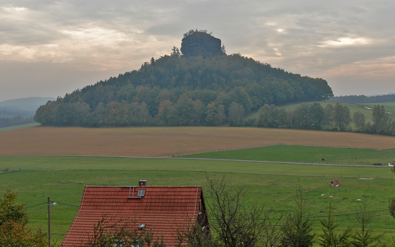 Frank Richter steuert den Höhepunkt der Führung an. Eine ländliche Wohnsiedlung in Schöne neben einem frisch gepflügten Acker. Höhepunkt? Typisch Frank Richter, sinnierst Du lächelnd. Die ersten Meter unscheinbares Deutschland und dann plötzlich eine Offenbarung so gewaltig wie ein Orkan. An Garagentoren vorbei geht es auf einer kleinen Treppe einen Hang hinauf. Du hast den „Wanderer über dem Nebelmeer“ bereits auswändig gelernt, könntest den Felsen in jeder Lebenslage aus dem Kopf nachzeichnen und ertappst Dich bei manchen Warteschleifen im Leben in der gleichen Pose dastehend wie ER. Und nun? Stufe, Stufe, Stufe. Dann ein kleines Plateau. Nun den Körper um 180 Grad drehen. Und Augen auf! Na?