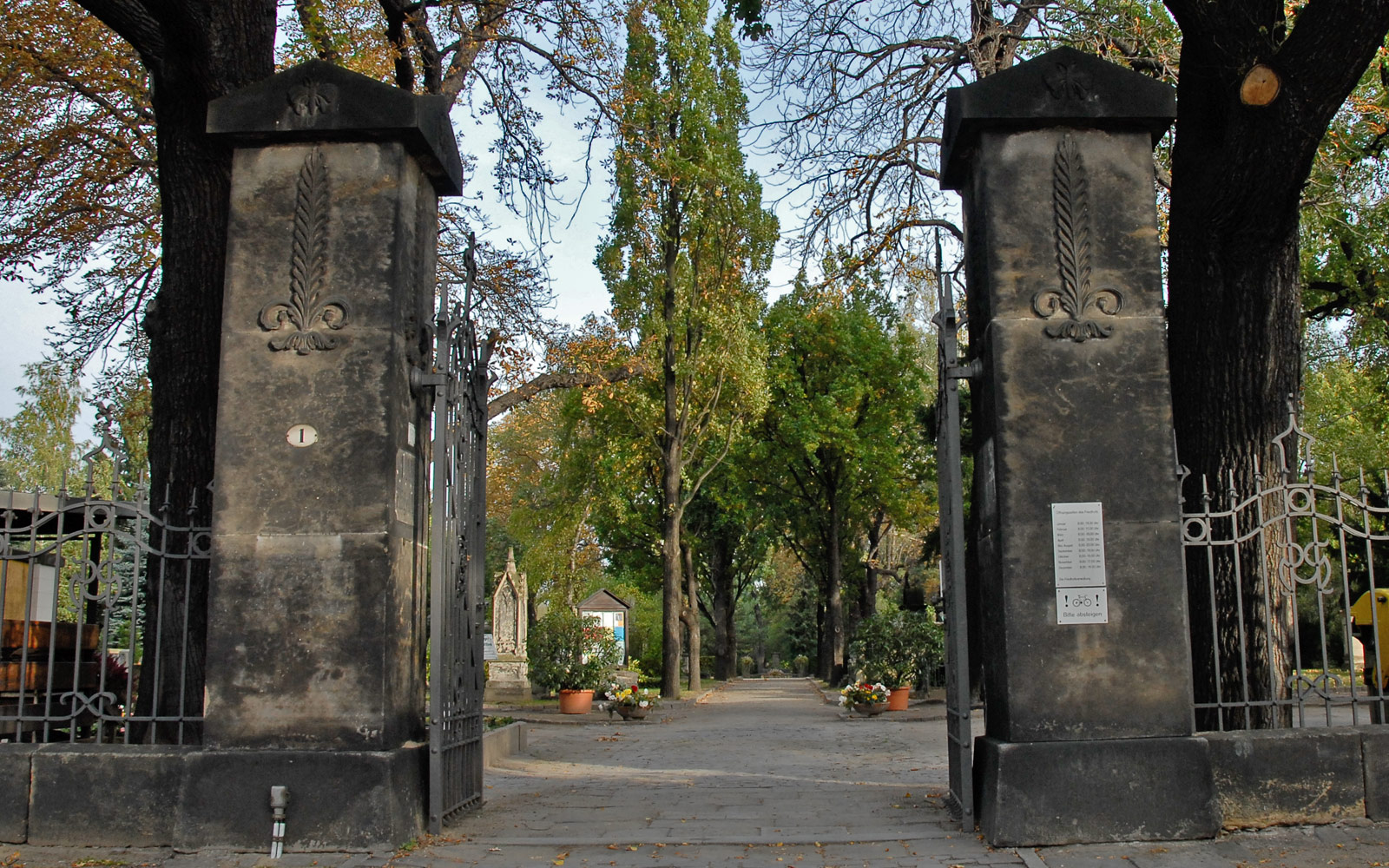 Der Friedhof in Dresden: Die beiden Säulen finden wir auch in seinen Bildern wieder…
