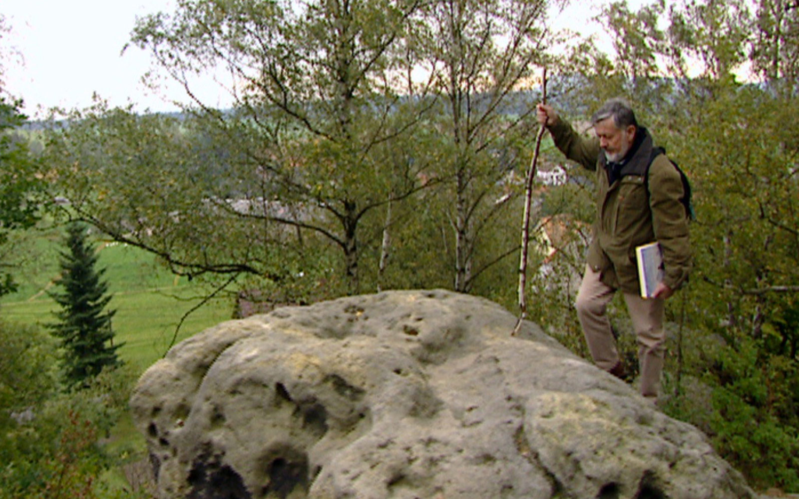 Unser Kamerakran fängt Frank Richter beim Wandern auf den Caspar-Felsen ein!