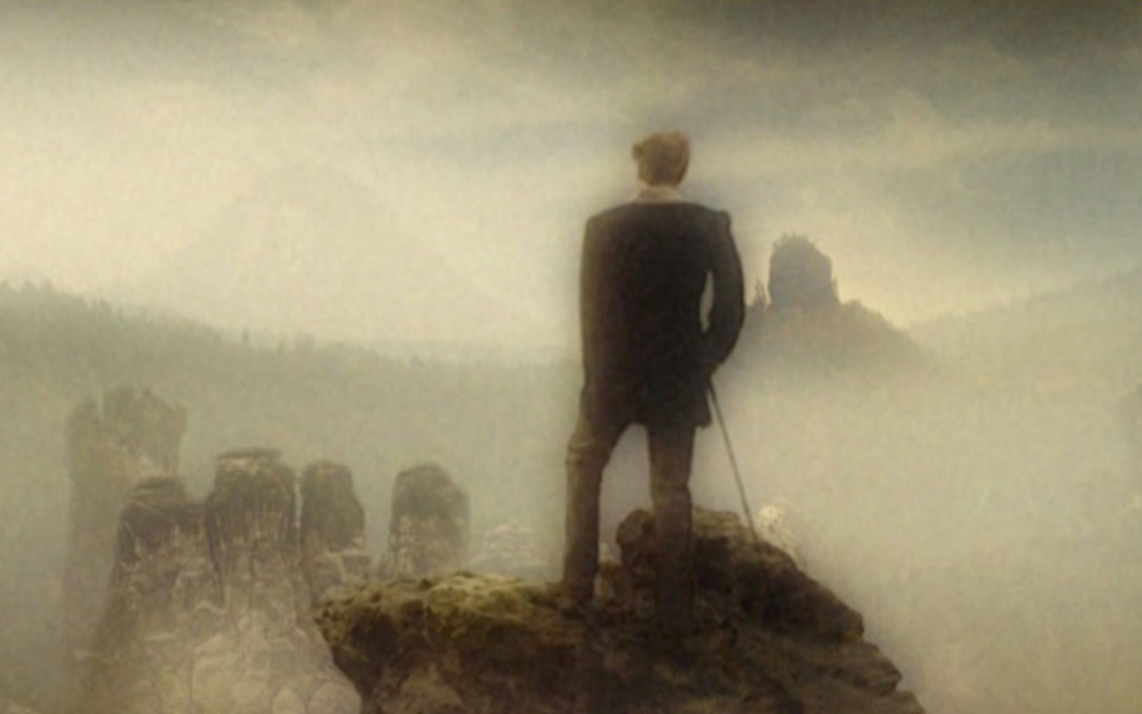 Sein berühmtestes Bildnis hängt in der Hamburger Kunsthalle: Der Wanderer über dem Nebelmeer. Wie viele andere Werke auch wirft es schon von der ersten Sekunde an Zaubersternchen in den Zuschauerraum. Wie schön! Würd ich mir sofort ins Wohnzimmer hängen! Geil! Doch im gleichen Moment schnappt die Falle zu. Mit einem kleinen Kater erwachen wir – und stellen plötzlich fest: Dieses Bild (und viele andere) steht für harte, schonungslose Kritik am herrschenden System! Wie? Was? Caspar ein politischer Rebell? Oh ja.