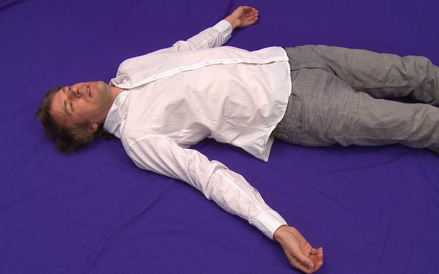 Probeliegen. Wir üben schon mal das "Zusammenbrechen" im Bluebox-Studio Rixner in Tegernsee. Klappt schon gut...