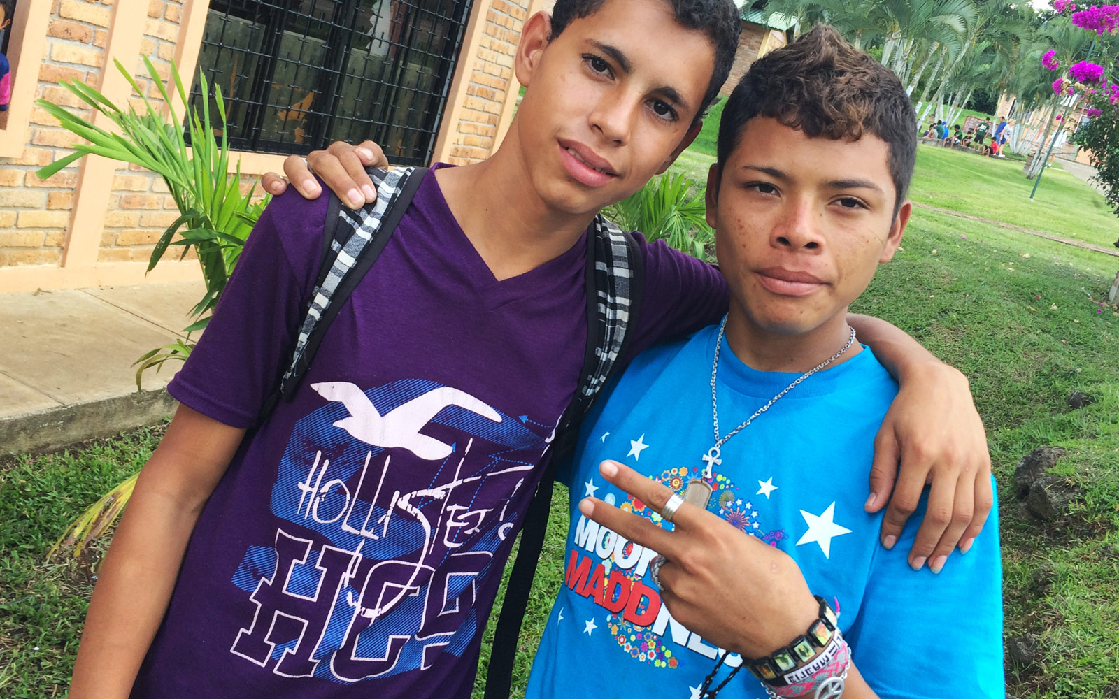 Landung in Tegucigalpa, der Hauptstadt. Butterweich, ein sonniger Morgen nach dem Nachtflug. Trotz Müdigkeit sind wir hellwach während der Autofahrt in den Norden des Landes, im kleinen Dorf San Francisco de Yojoa. Das Tor geht auf – und sofort richten sich viele neugierige Blicke auf die Neuankömmlinge. Die Jungs mähen gerade eine Wiese und räumen alte Äste zur Seite.