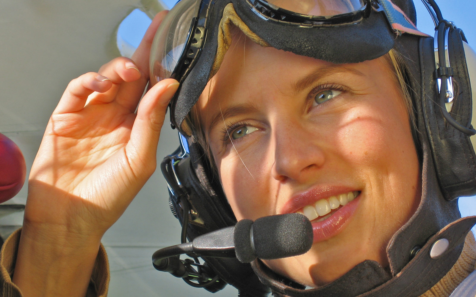 Darstellerin Romy verpackt sich für den Cabrio-Flug!