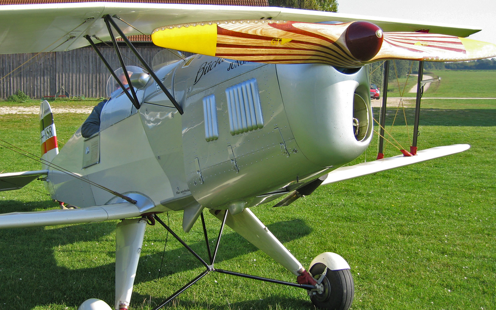 Die nachgebaute Bücker: Ein Bilderbuch-Doppeldecker!