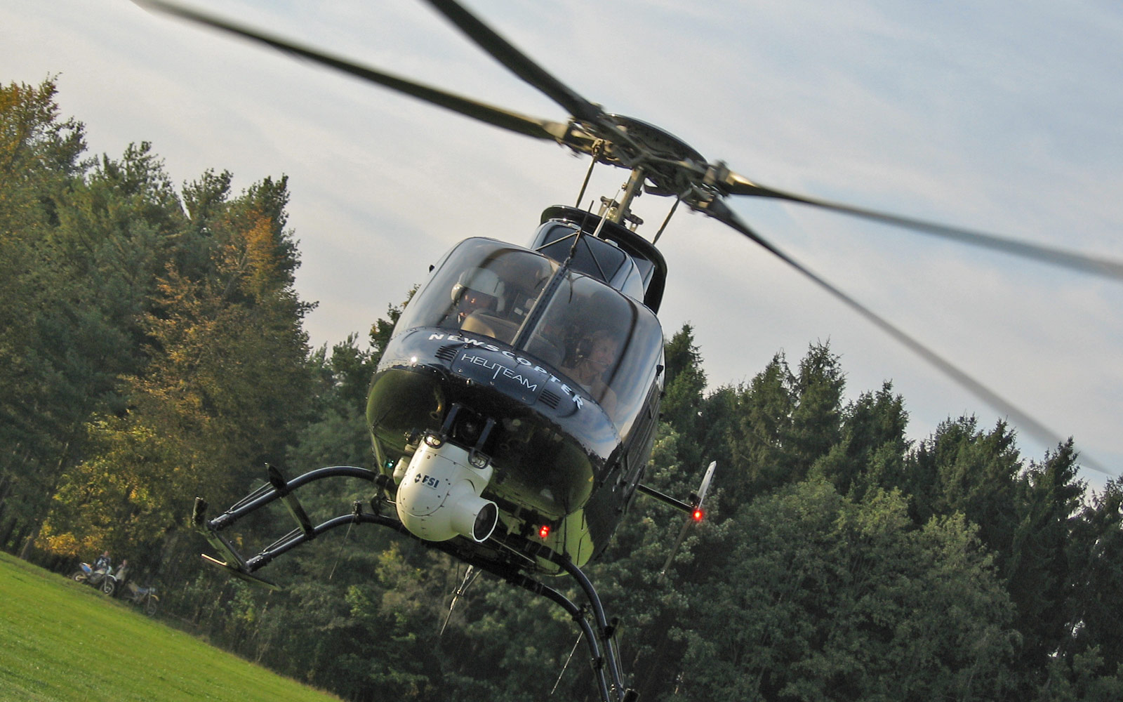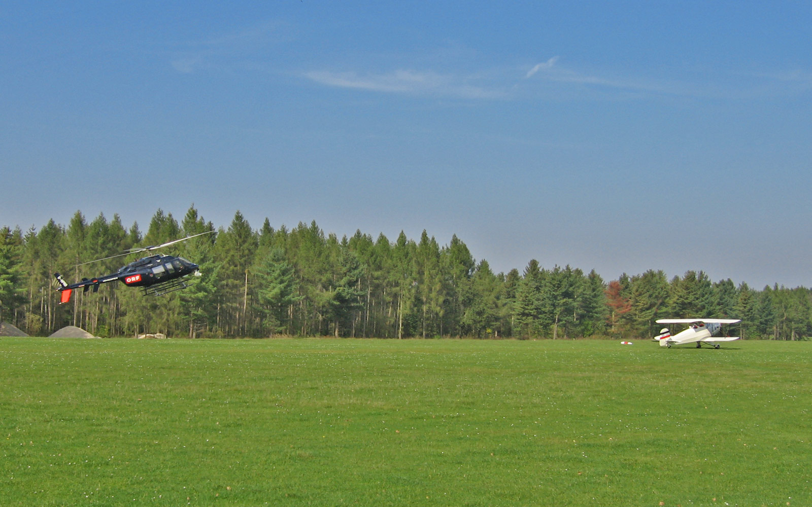 Follow me! Der Heli macht sich auf den Weg und folgt dem Doppeldecker auf den Weg nach Regensburg.