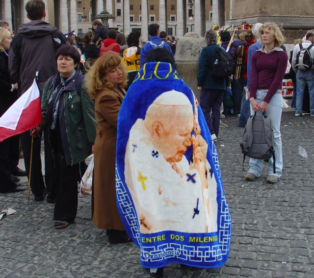Johannes Paul II. (lateinisch Ioannes Paulus PP. II, bürgerlich Karol Józef Wojtyła; * 18. Mai 1920 in Wadowice, Polen; † 2. April 2005 in der Vatikanstadt) war vom 16. Oktober 1978 bis zu seinem Tod 26 Jahre und 5 Monate lang Papst der römisch-katholischen Kirche. Ein längeres Pontifikat ist nur für Pius IX. belegt. Johannes Paul II. war der erste Slawe auf dem Papstthron. Ihm wird eine maßgebliche Rolle bei der Beendigung des Sozialismus in seinem Heimatland Polen zugeschrieben. Am 1. Mai 2011 sprach ihn sein Nachfolger Benedikt XVI. in Rom selig. Am 27. April 2014 wurde Johannes Paul II. von Papst Franziskus heiliggesprochen. Sein Gedenktag ist der 22. Oktober, der Tag seiner Inthronisation im Jahre 1978. (Quelle: Wikipedia)