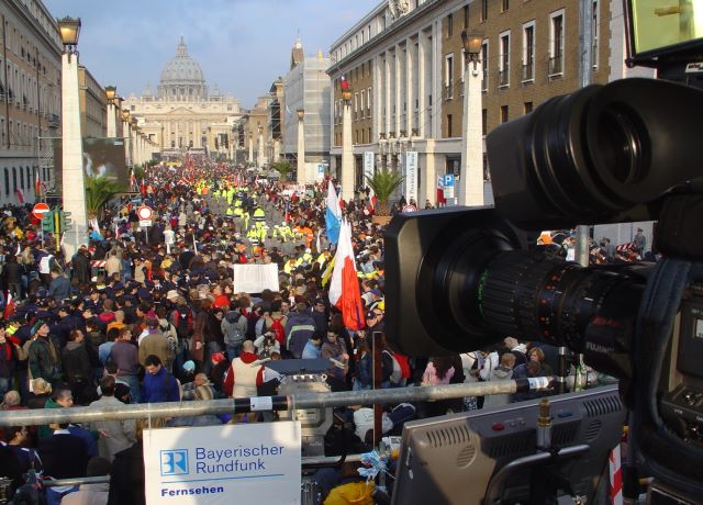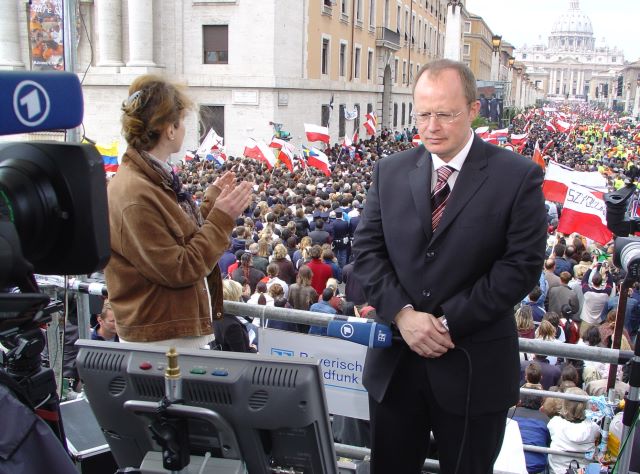 Papst Johannes Paul der Zweite stirbt und Pilger wie Medienvertreter aus aller Welt machen sich auf den Weg nach Rom. Auch das ARD Mittagsmagazin zieht mit einem Vierer-Team los. Millionen nehmen Abschied vom Heiligen Vater und wir senden vom 6. bis 8. April 2005. Auch zwei Wochen später landen wir wieder in Rom – zum Konklave: Die Wahl eines bayerischen Papstes!