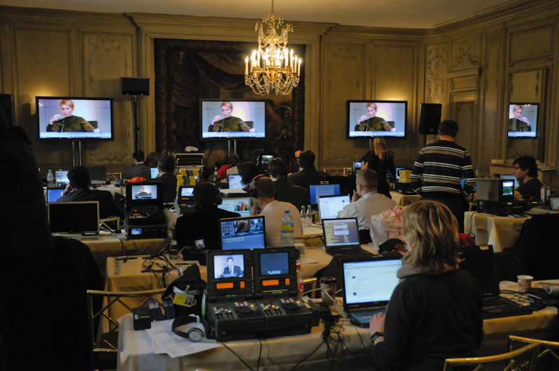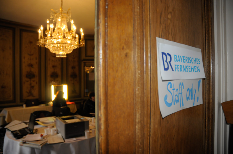 Im Hotel Bayerischer Hof wimmelt es von Journalisten. Auch unser BR-Schneide-Besprechungs-Aufenthalts-Zimmer ist voll: Gerade herrscht heiße Phase – Beiträge entstehen und die Sendungsplanung läuft auf Hochtouren.