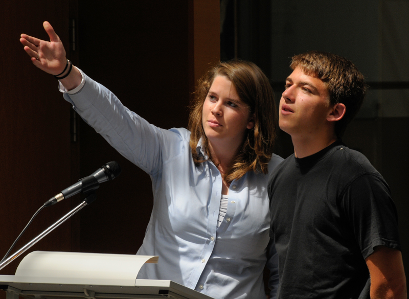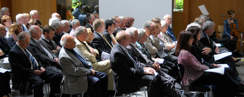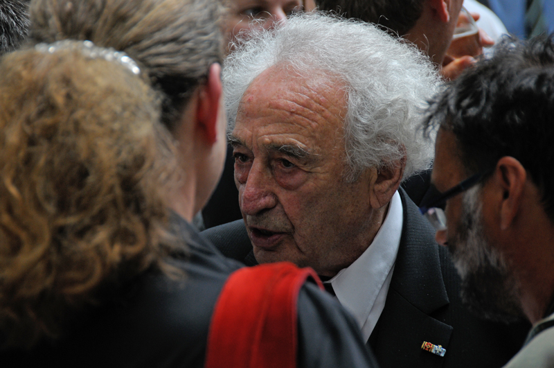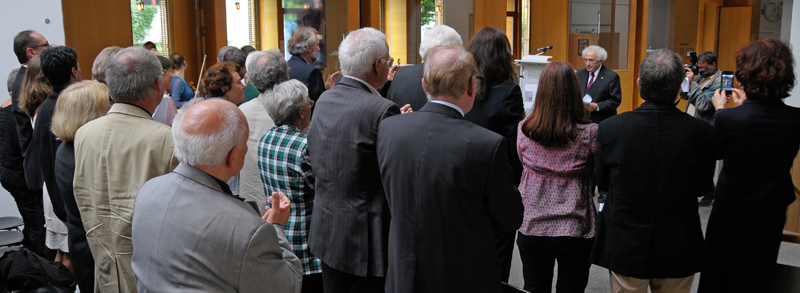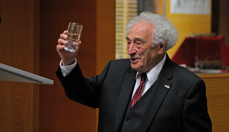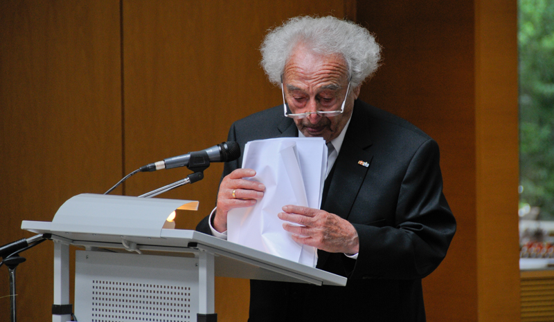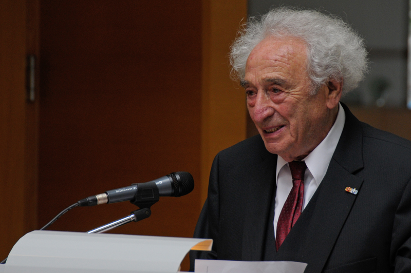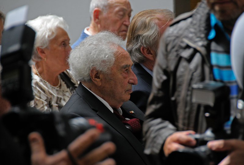 Langsam geht er nach vorne zum Rednerpult und alle Gäste sind jetzt ganz still. Ja, wenn eine Bildungseinrichtung nach einem benannt wird, so geschieht das normalerweise erst, wenn man verstorben ist. So hat er mehr davon, dass ihm diese Ehre bereits zu Lebzeiten zuteil wird. Das sagt er in einem Ton, aus dem deutlich ein Schmunzeln herauszuhören ist. Das Publikum hat verstanden – und schmunzelt mit. Max Mannheimer hat es einmal mehr geschafft: Die Menschen in seinen Bann zu ziehen.