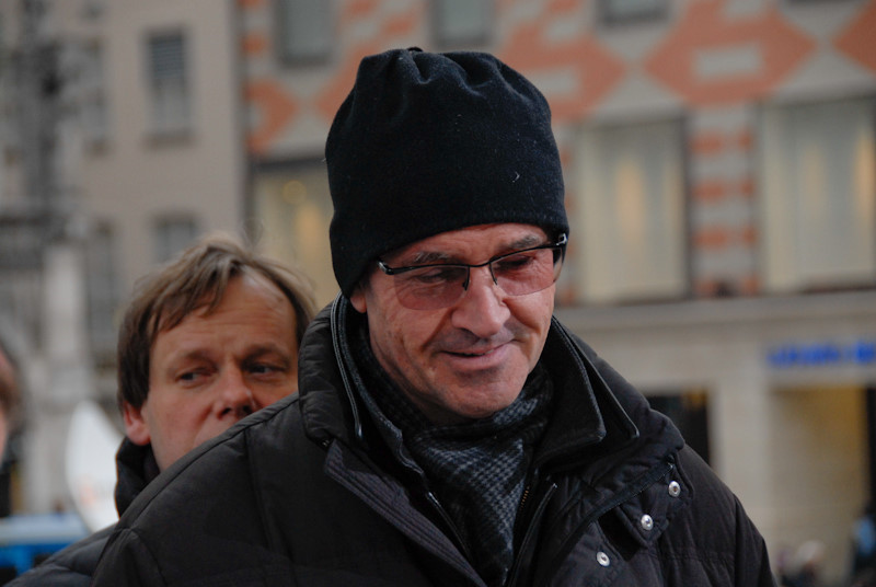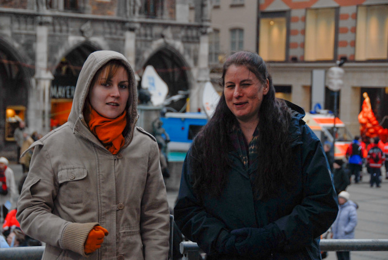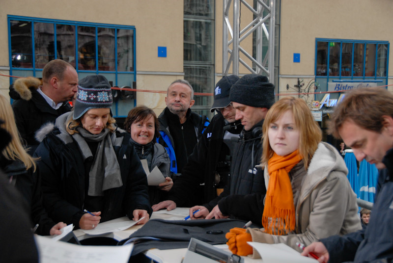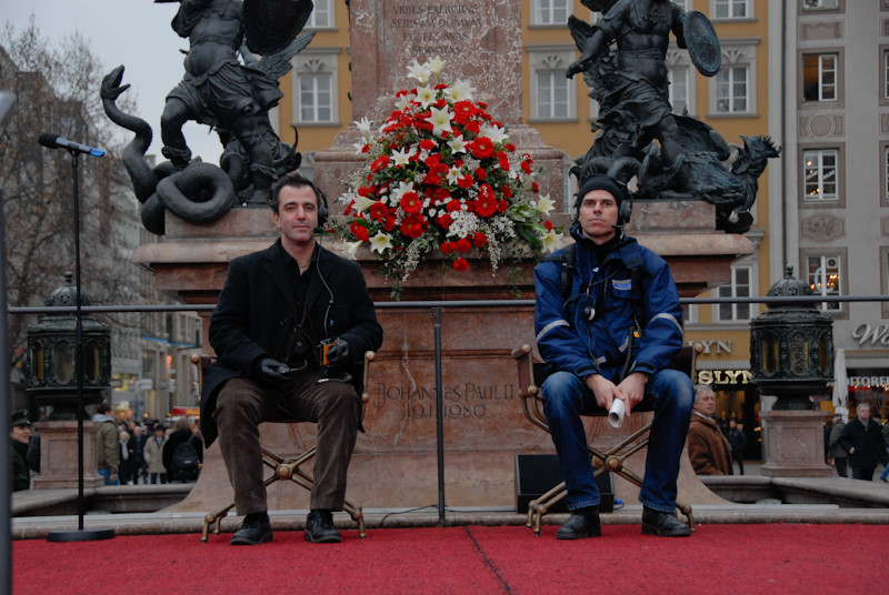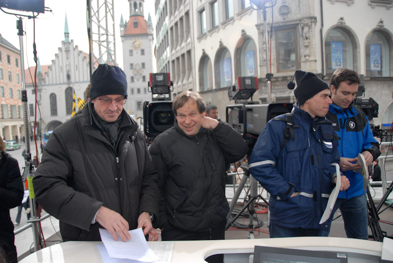 Und dann Kamera Zwo: Regiebesprechung im eiskalten Wind mitten auf dem Marienplatz.