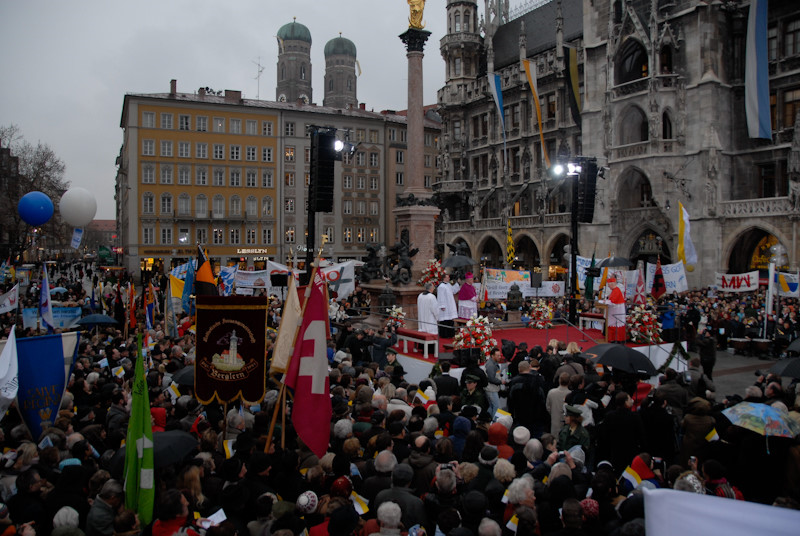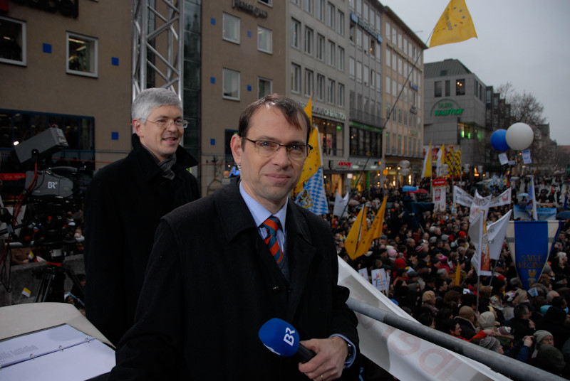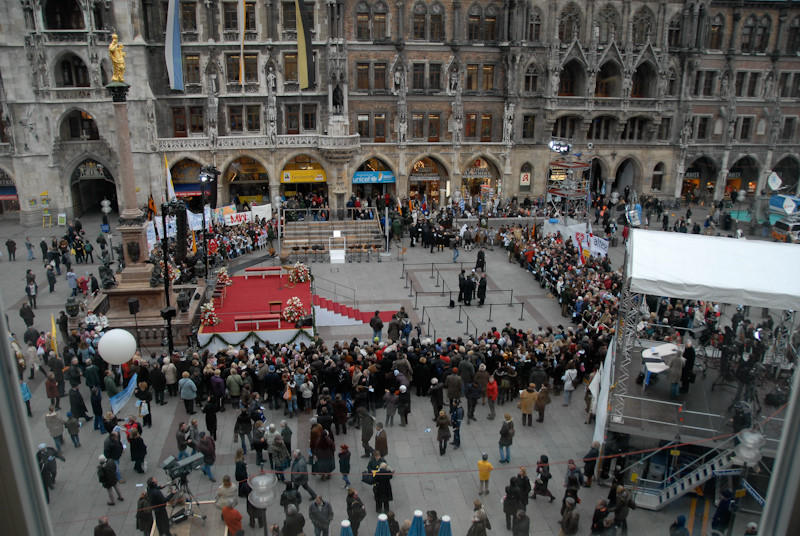Marx hat heute vormittag das Kloster Scheyern besucht und vorhin noch die Pfarrei St. Peter und Paul in Feldmoching. Jetzt kurz nach 16 Uhr kommt er hier an – im Herzen von München – und sicher auch im Herzen der Münchner! Und das wollen wir gemeinsam erleben – auch wir hier vor den Kameras (Moderationstext vom 30.1.2008)!