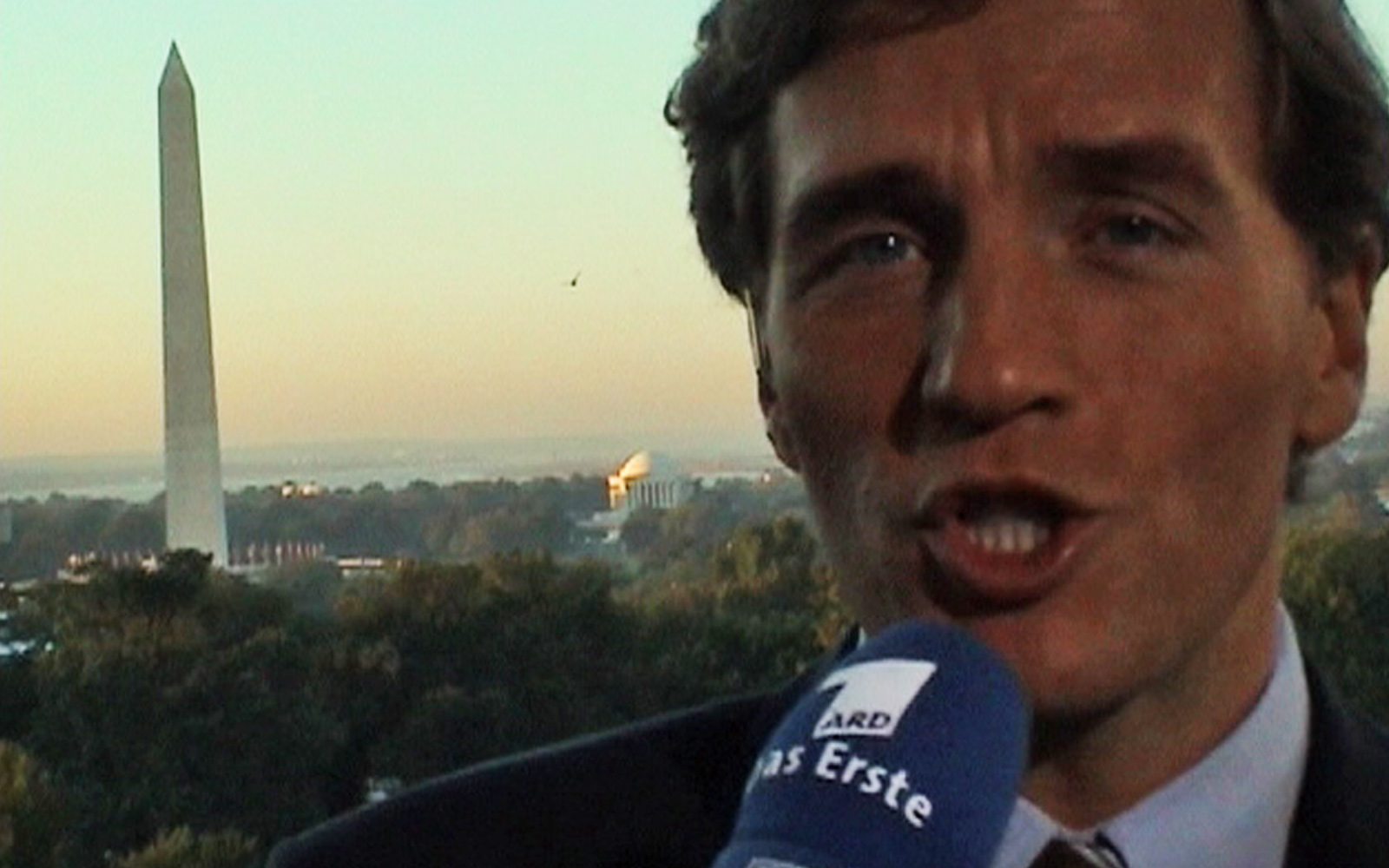 Die Sendung beginnt – und München schaltet zu uns auf den Aussichtsbalkon über dem Weißen Haus.