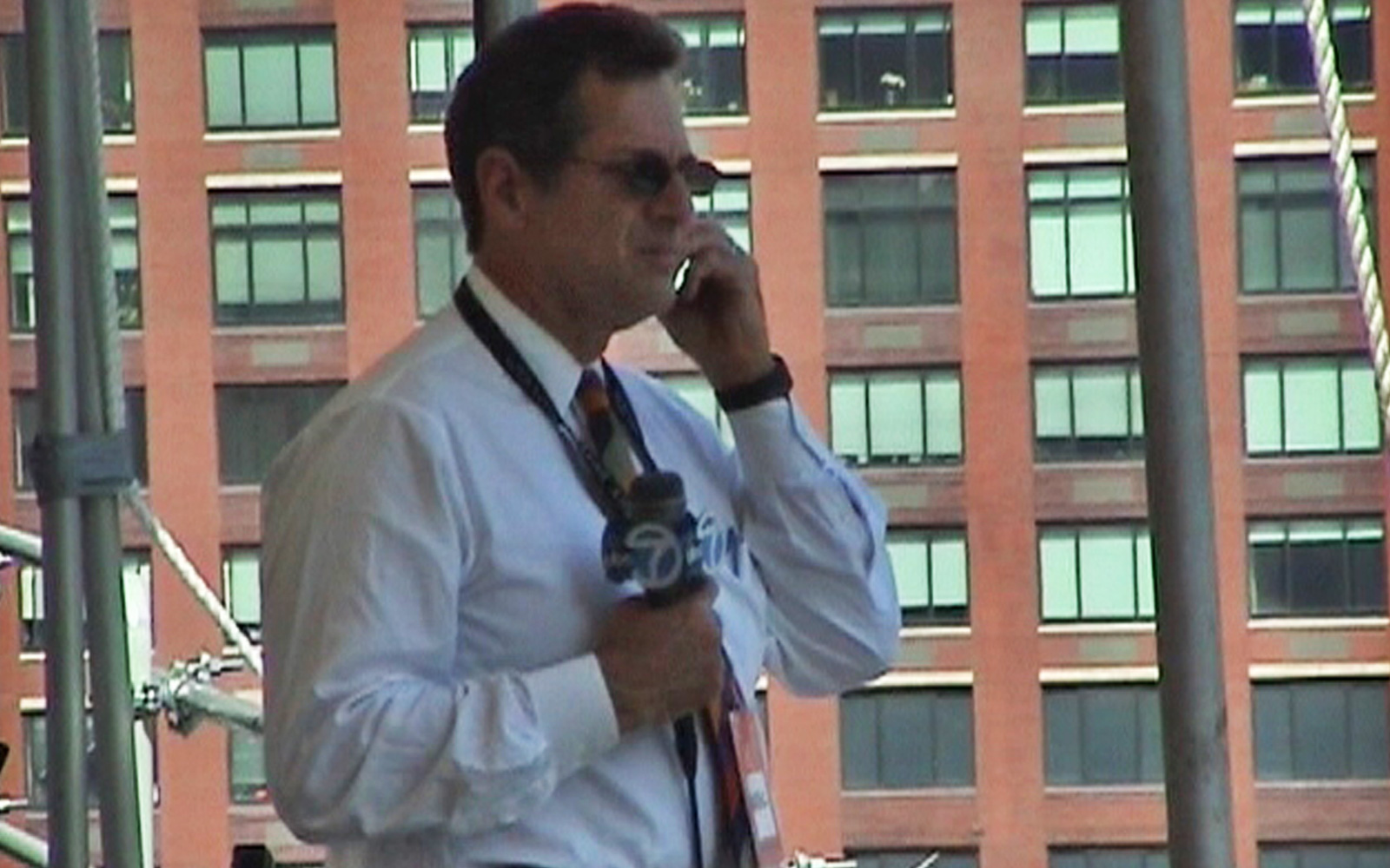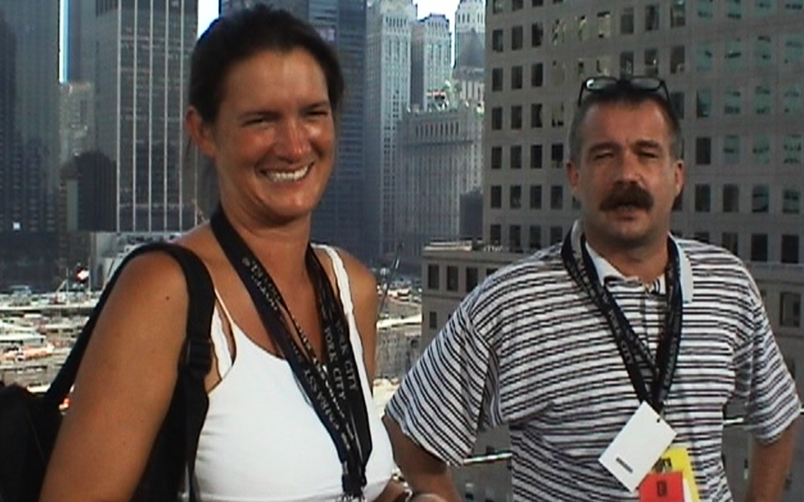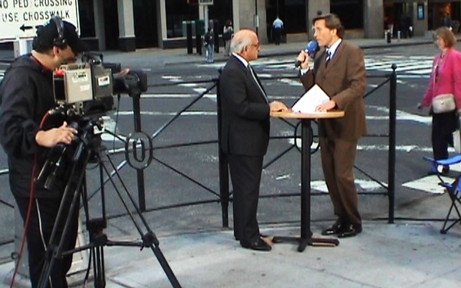 event_logos_911_v2Das Mittagsmagazin-Team bezieht sein „Studio“ auf einem Hoteldach – zusammen mit mehreren Dutzend anderen TV-Einheiten. Wir blicken direkt auf den Ground Zero und erleben mit, wie kurz vor 9 Uhr morgens ein Verkehrsflugzeug über den Ground Zero hinwegrauscht. Sicher ein Zufall. Aber trotzdem schauen alle hoch.