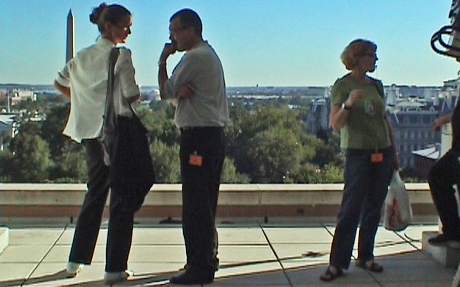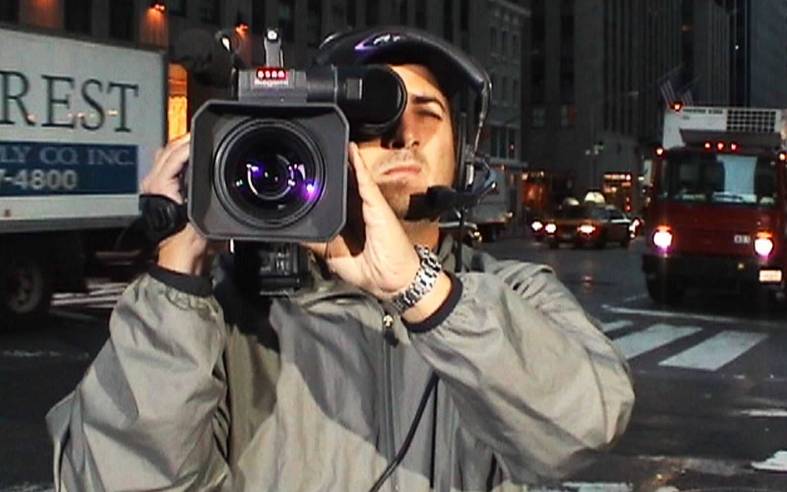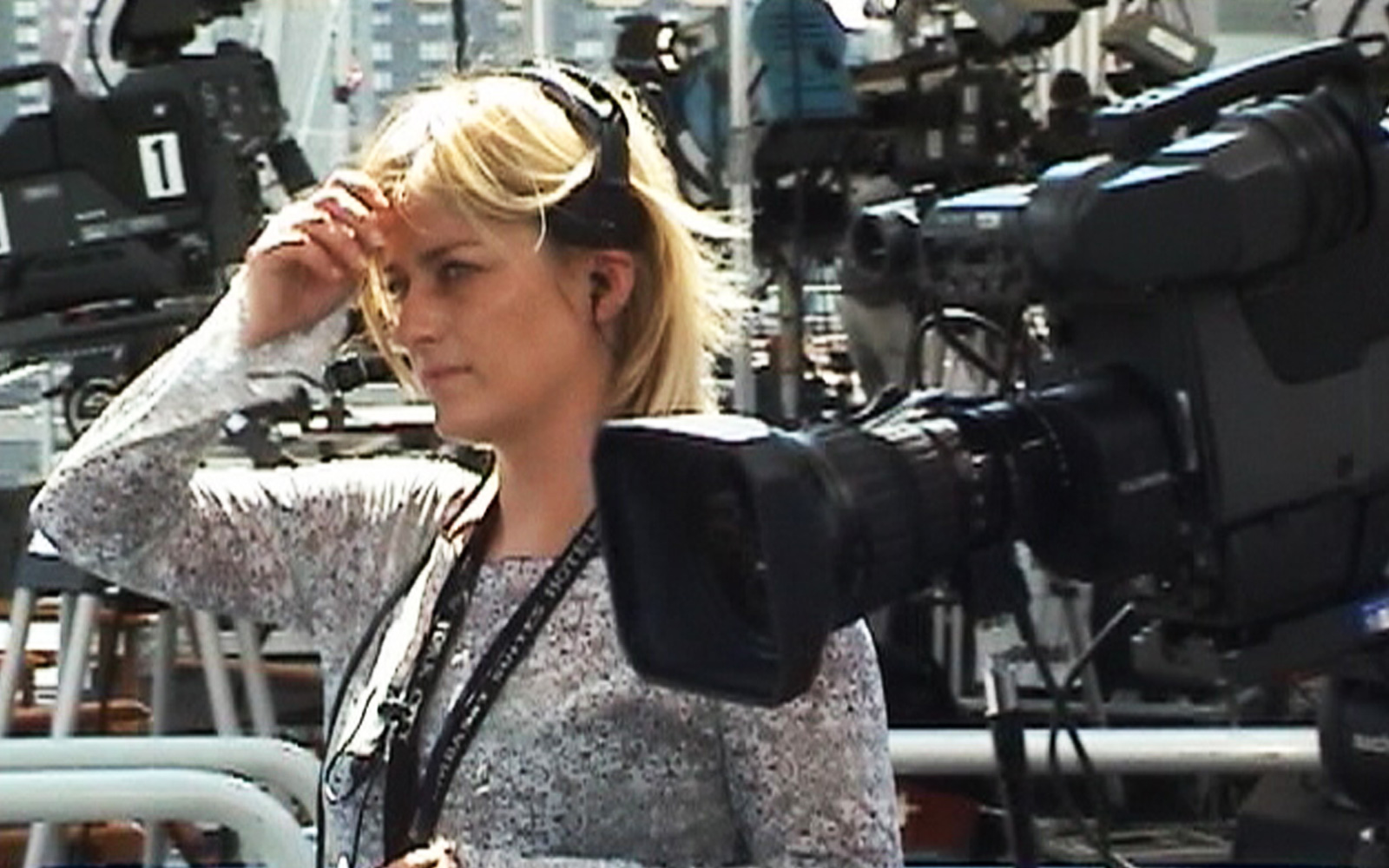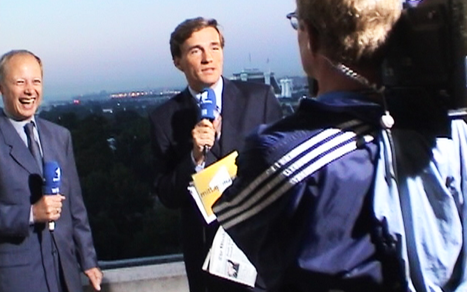 event_logos_911_v2Das Mittagsmagazin-Team bezieht sein „Studio“ auf einem Hoteldach – zusammen mit mehreren Dutzend anderen TV-Einheiten. Wir blicken direkt auf den Ground Zero und erleben mit, wie kurz vor 9 Uhr morgens ein Verkehrsflugzeug über den Ground Zero hinwegrauscht. Sicher ein Zufall. Aber trotzdem schauen alle hoch.