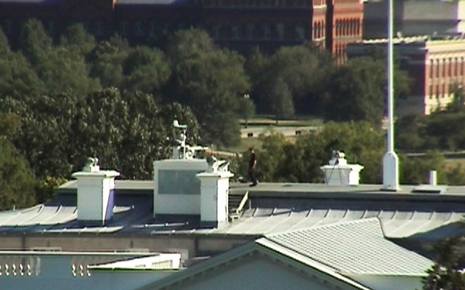 Bester Blick von unserer Location auf das Weiße Haus: Auch dessen Dach ist gut bewacht.