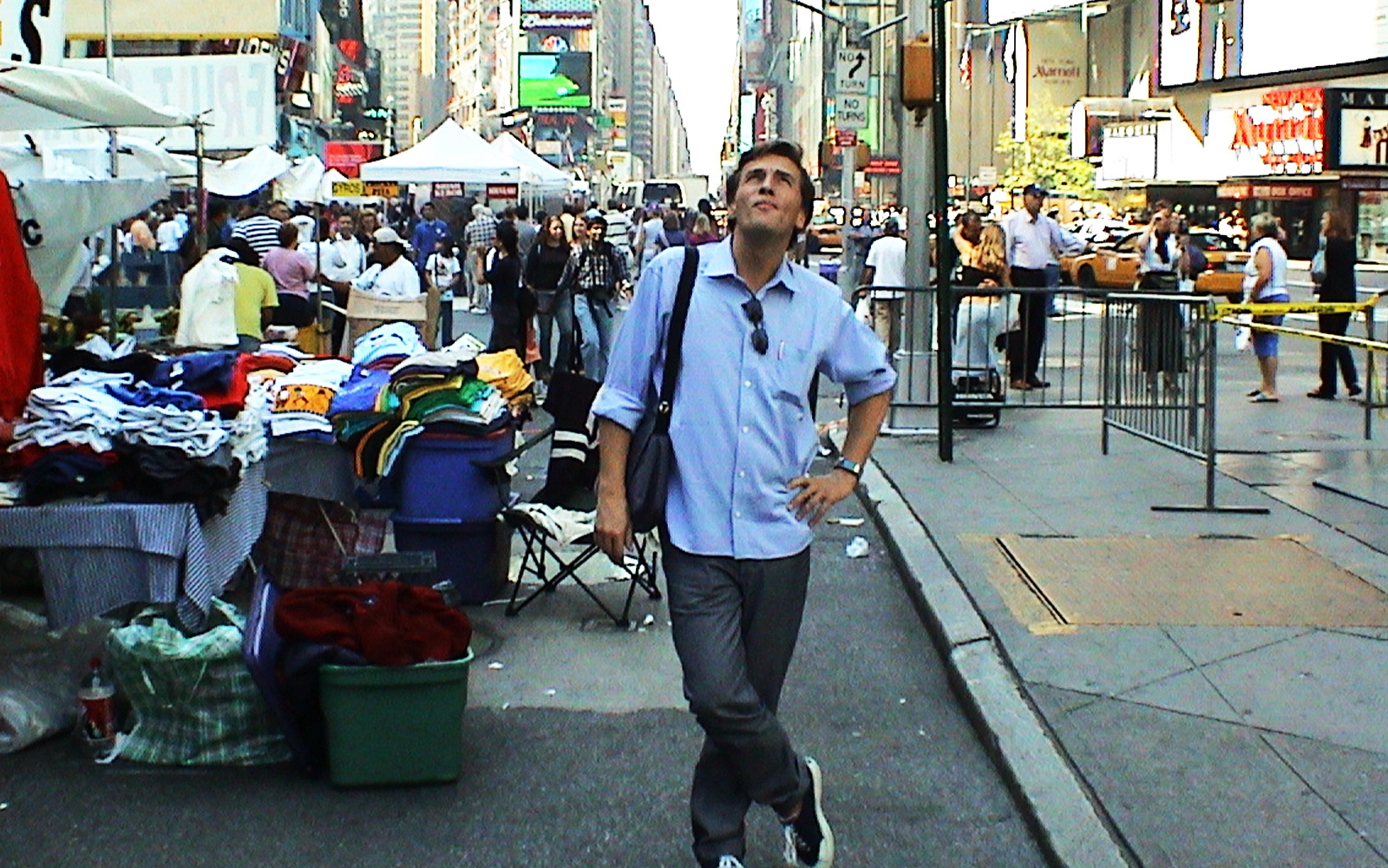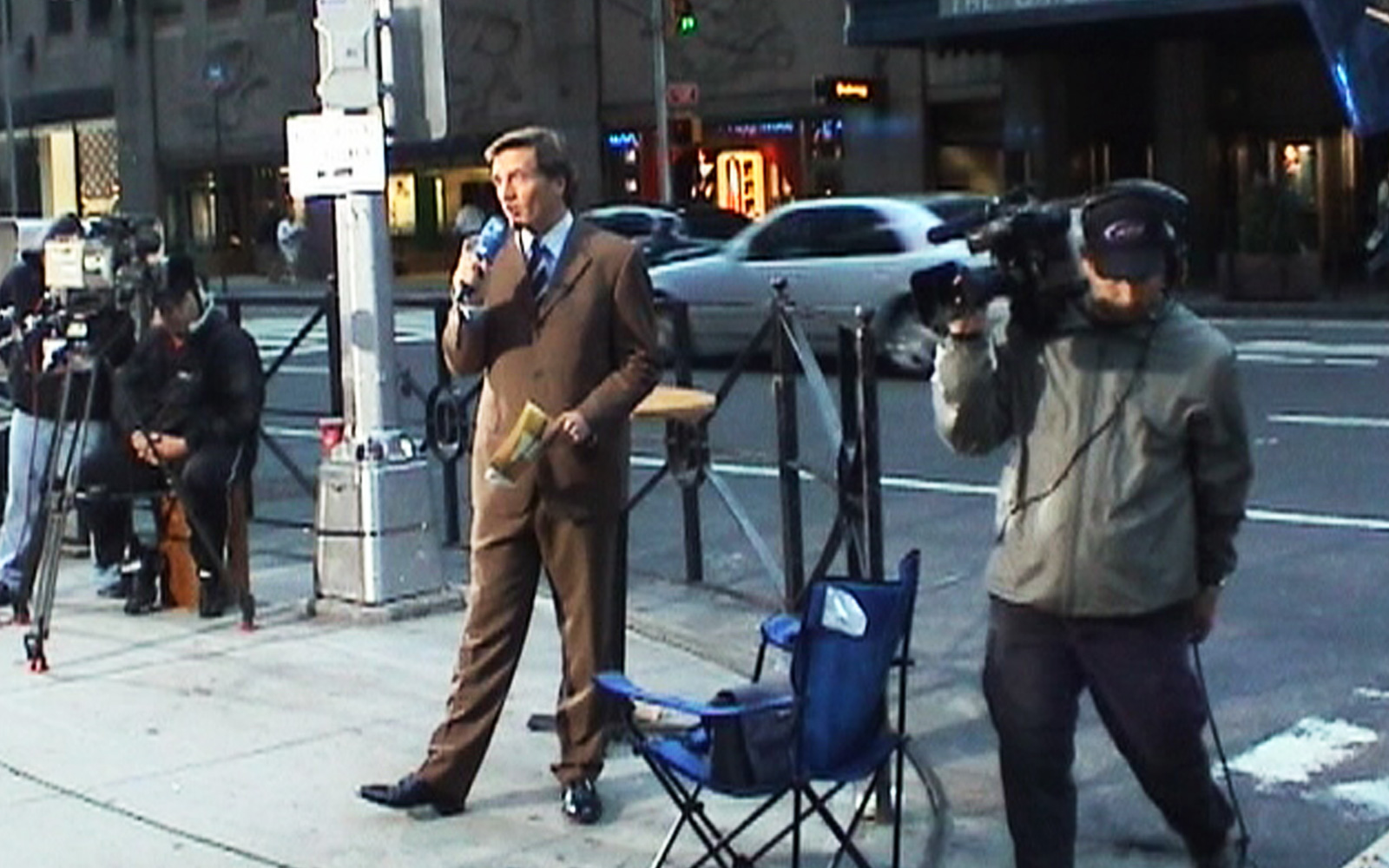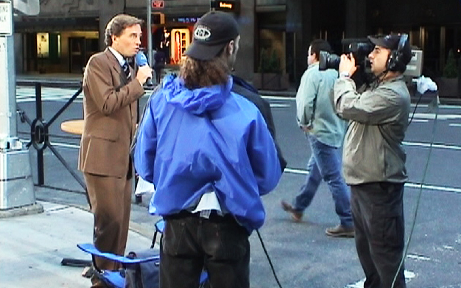 Und am letzten Tag in New York (12.9.2002) bauen wir unser Set an einer Kreuzung vor der legendären Radio City Music Hall auf.