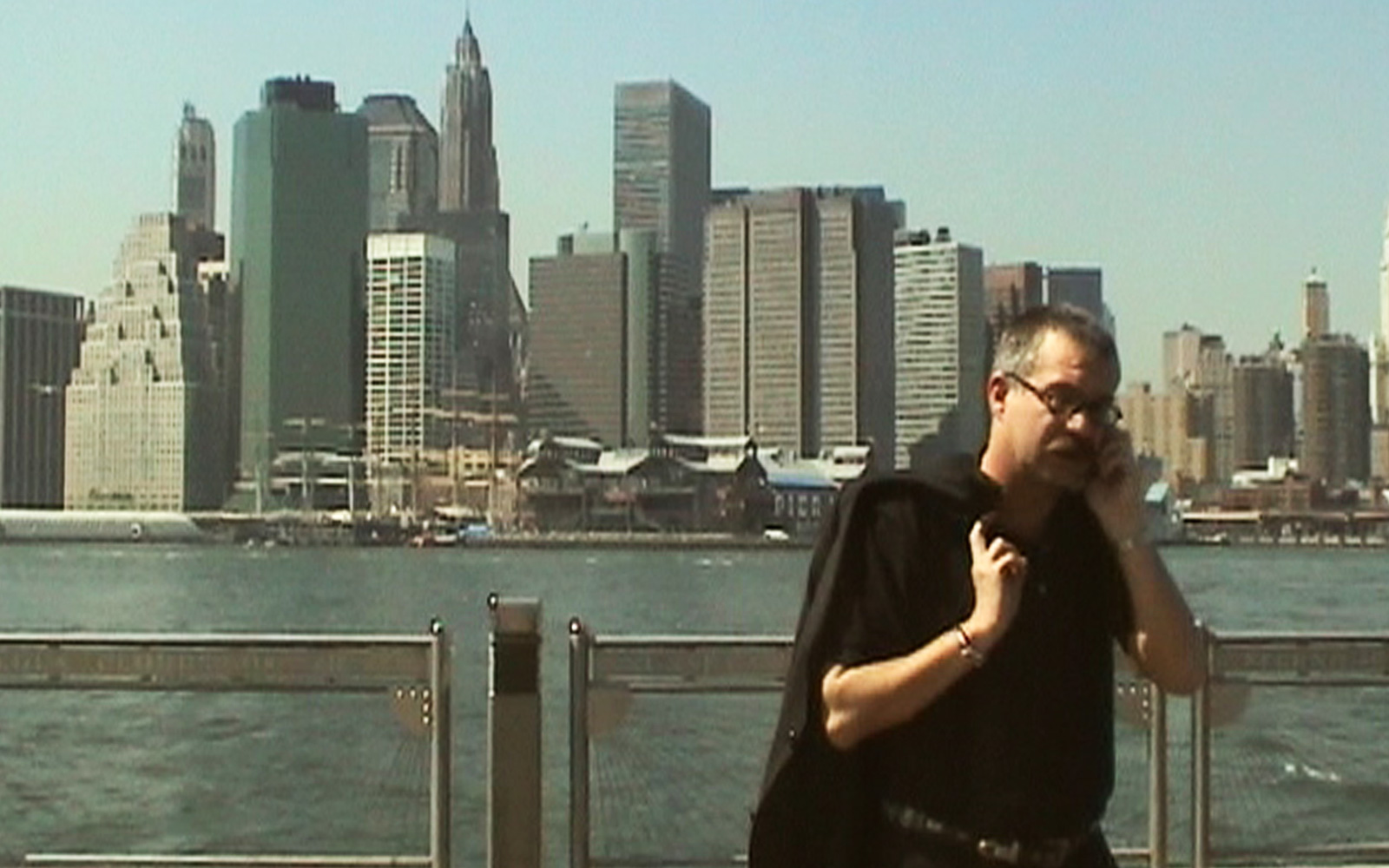 Am nächsten Morgen beziehen wir Stellung in Brooklyn. An einem kleinen Pier liegt uns die Skyline zu Füßen – und wir arbeiten den Jahrestag heute zusammen mit Künstlern auf. Zum Beispiel mit einem Video-Künstler, der am Vorabend von 9/11 noch im World Trade Center Aufnahmen gemacht hat: Regentropfen an den Scheiben des Wolkenkratzers. Sein Kommentar dazu: „Das World Trade Center weint“.