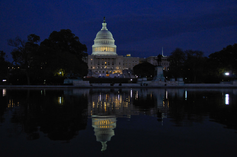Auch das gehört zu einem Außeneinsatz: Erstmal mit der Stadt „warmwerden“. Ein nächtlicher Walk auf der Mall – mit Blick aufs Capitol.