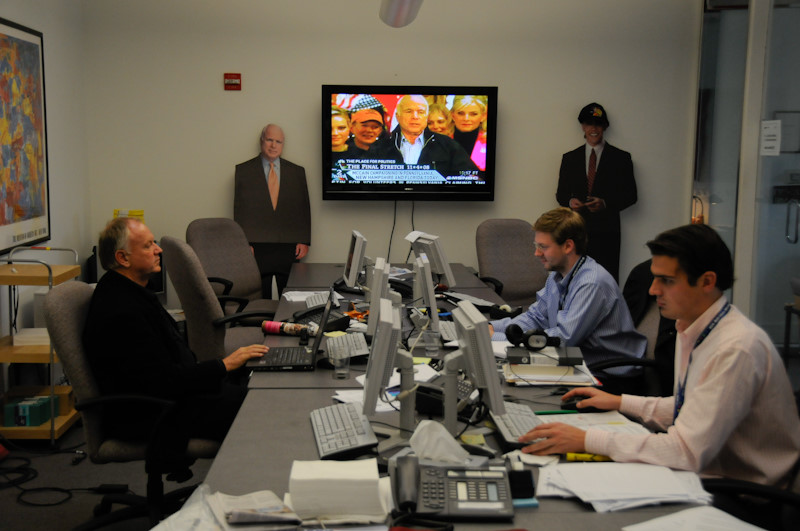 Das ARD-Studio Washington liegt malerisch in Georgetown. Und dort schlagen wir unsere Zelte auf. Nein, wir sind wirklich nicht alleine. Im ganzen Haus tummeln sich Reporter, Korrespondenten, Redakteure, Filmemacher – und Chefredakteure. Wie im Bienenstock. Und so manche Nacht wird für alle Beteiligten verdammt kurz. Für das ARD-Mittagsmagazin-Team sogar megakurz, nämlich mit nullkommanull Schlaf. Aber dafür erleben wir einen Ruck, der durch das ganze Land geht. Die Livesendung flimmert am 5.11.2008 über die Bildschirme.