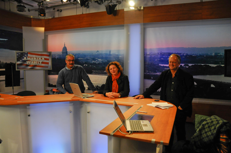 Ab 20 Uhr tummeln wir uns auf den Straßen von Washington und drehen eine Reportage über das Wahlfieber in der Hauptstadt. Scheider stürmt Kneipen und interviewt Stammgäste. Dann ab ins Wahllokal (Poll Station). Irgendwann nach 23 Uhr zurück ins Studio – denn um 6 Uhr morgens gehen wir auf Sendung, wenn in Deutschland das Mittagsmagazin startet. Geschlafen? Naja, bisschen gedöst auf einem Sofa, mehr nicht.