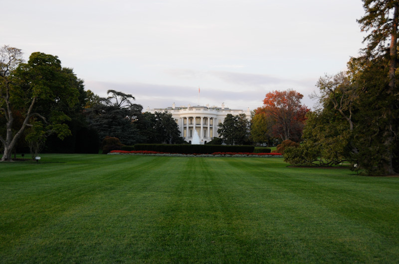 Das Machtzentrum der Welt: Das Weiße Haus in Washington. Vom Zaun aus wirkt es eher klein und irgendwie putzig – doch unsere Sinne täuschen sich. Man kann sich wohl ziemlich gut darin verlaufen (wer so weit kommt)…