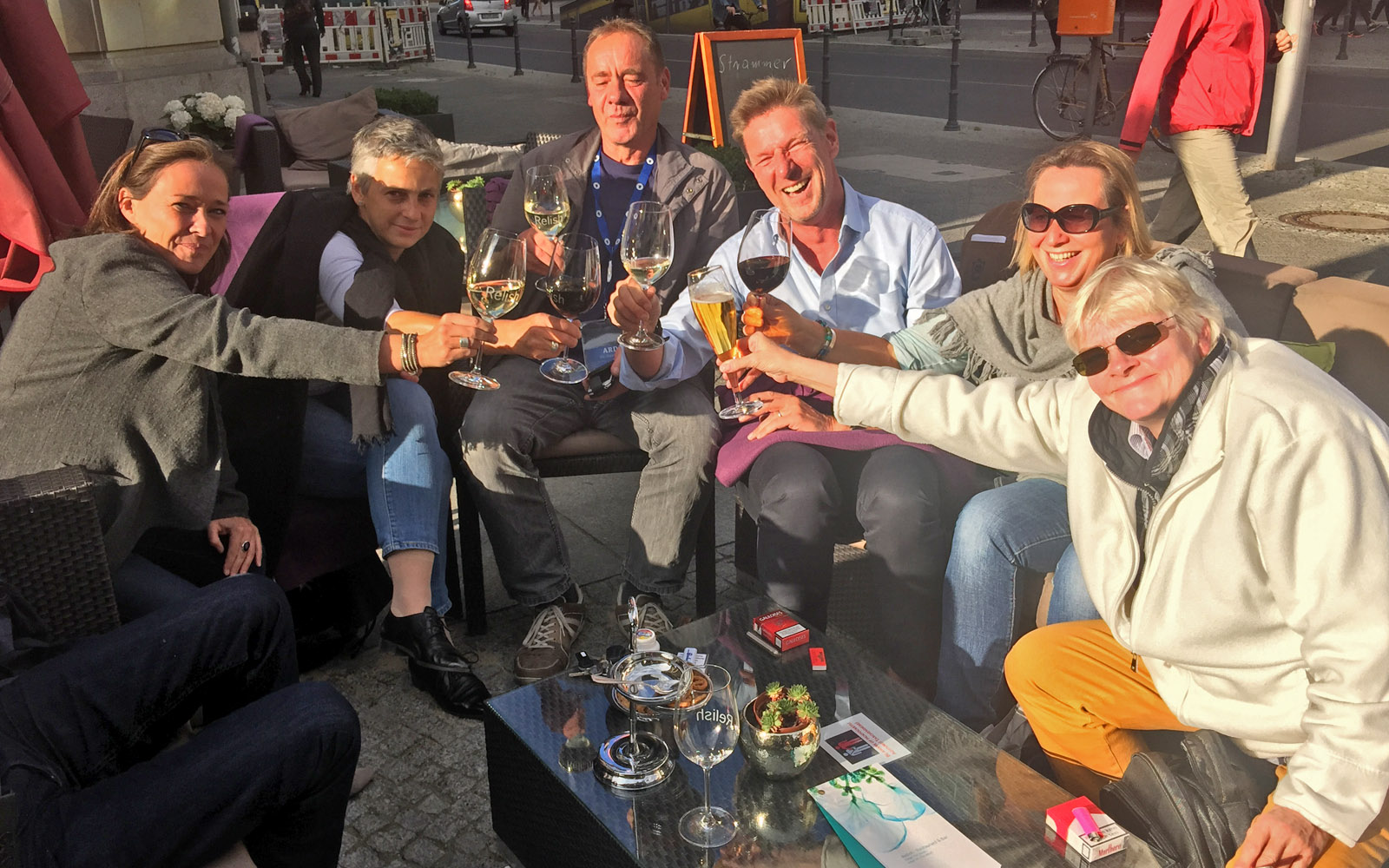 Nach getaner Sendung ein Gläschen in der Sonne!