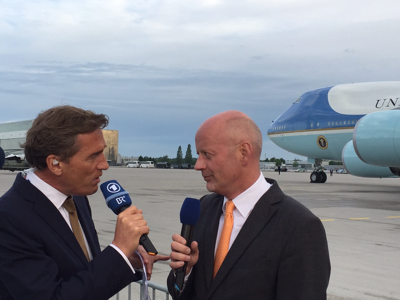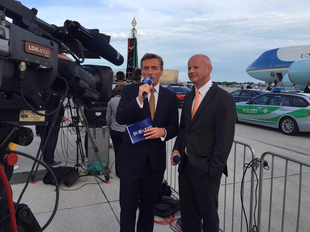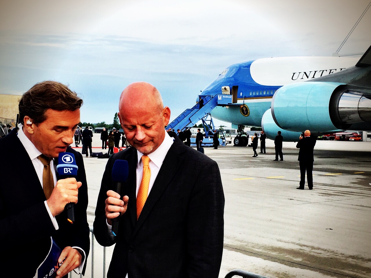 Wir erleben an jenem Sonntagmorgen (7.6.2015) etwas ganz Besonderes: Zum ersten Mal betritt der amerikanische Präsident Barack Obama bayerischen Boden – als Teilnehmer des G7-Gipfels! Und zum zweiten Mal überhaupt landet ein US-Präsident in München! Und Stefan Scheider kommentiert das Ereignis ab 6.40 Uhr im Bayerischen Fernsehen live zusammen mit dem Politikforscher und Außenpolitik-Fachmann Professor Stephan Bierling von der Uni Regensburg!