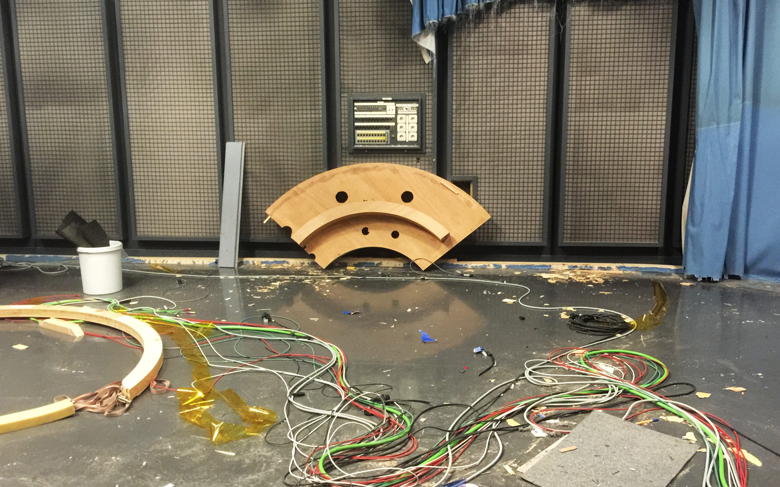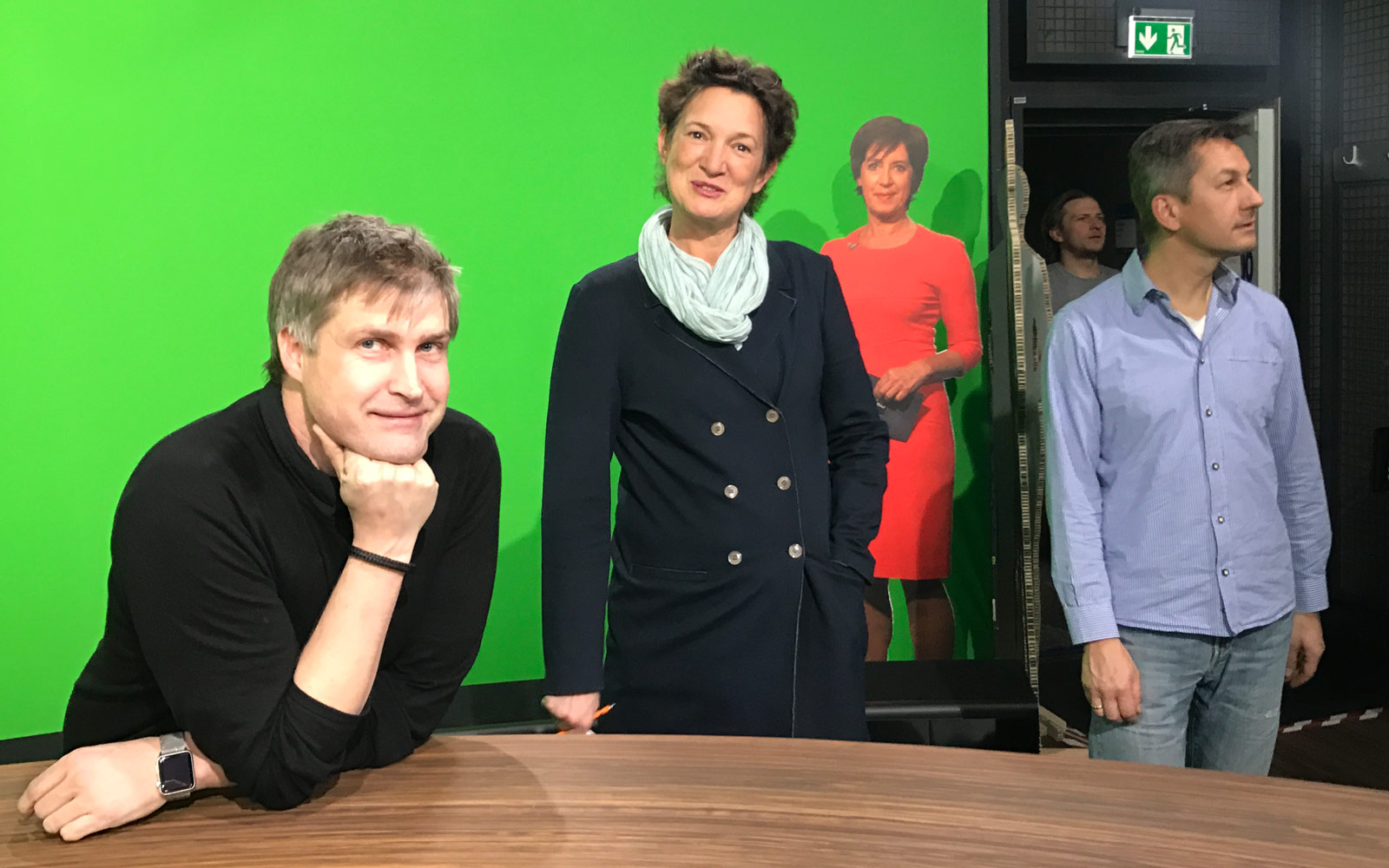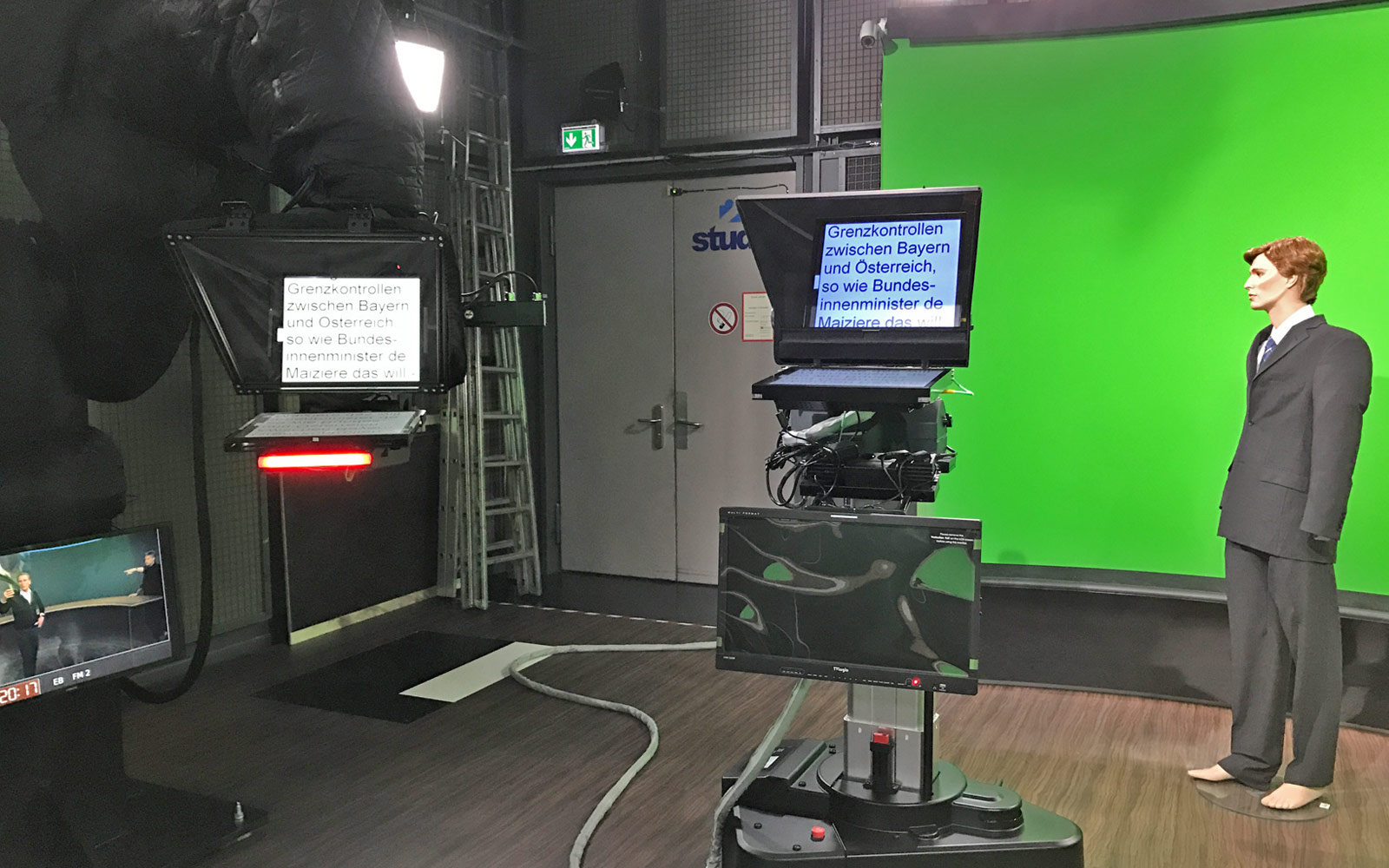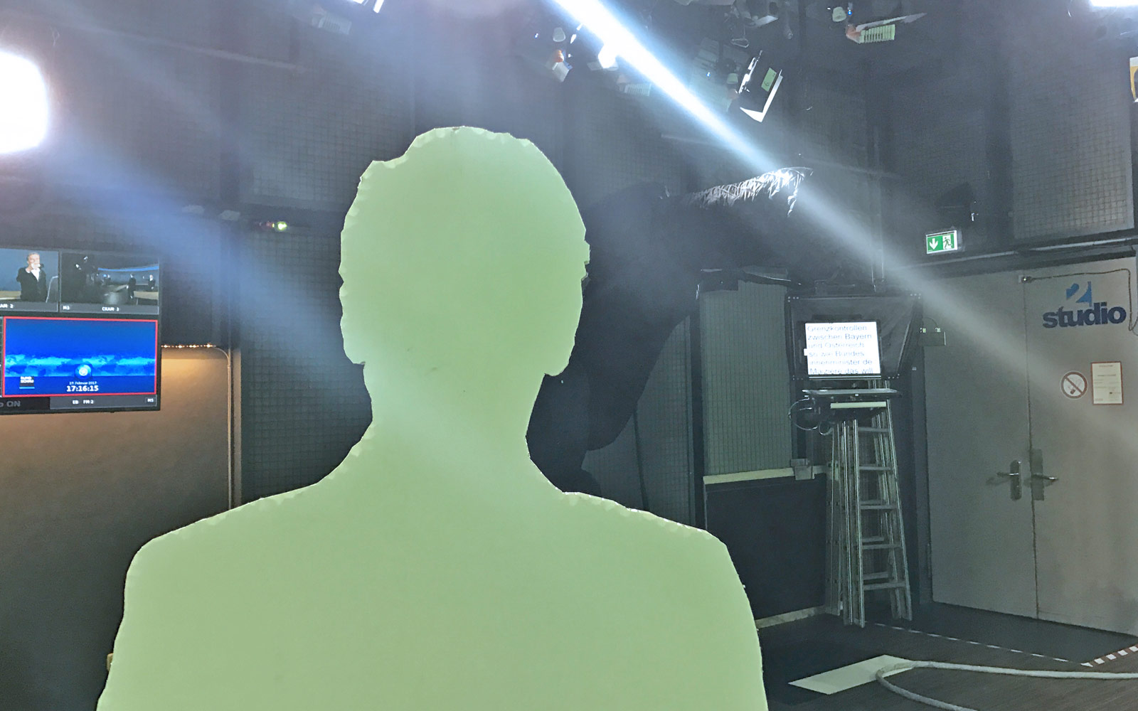 Ok, das neue Studio nimmt Formen an. Der Tisch mit der handbemalten Holzmaserung steht bereits, jetzt tüfteln die Experten an den Roboterkameras und ihrer Software. Schließlich sollen die Teile ja nicht mitten im Satz gegen unsere Stirne donnern…;-)