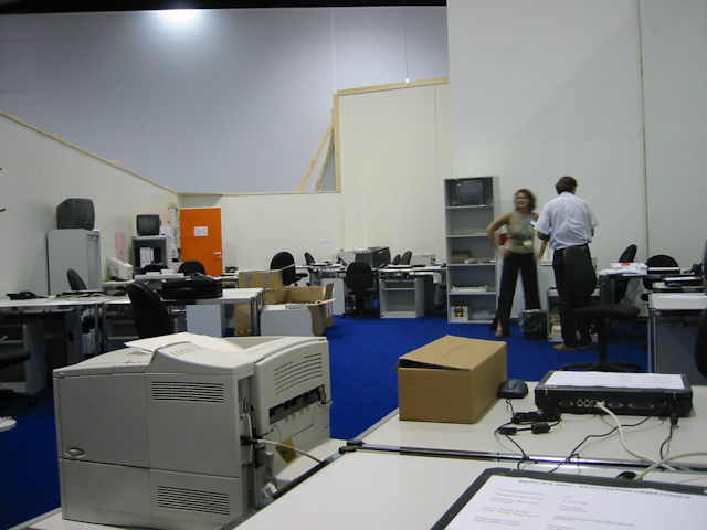 Hallenkoller: Mitten in der Halle 2.2 hat die ARD ihre Offices. Die Folge: Dauerdröhnen und Grundrauschen.