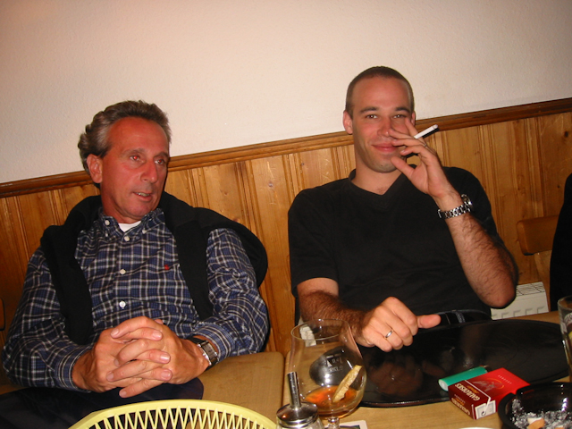 Workout: Zwischen Senden & Drehen gibt’s auch Sitzen und After-Show-Dinner. Hier Ulli und Dirk. Am Abend kippen alle ins Bett und machen keinen Muckser mehr.