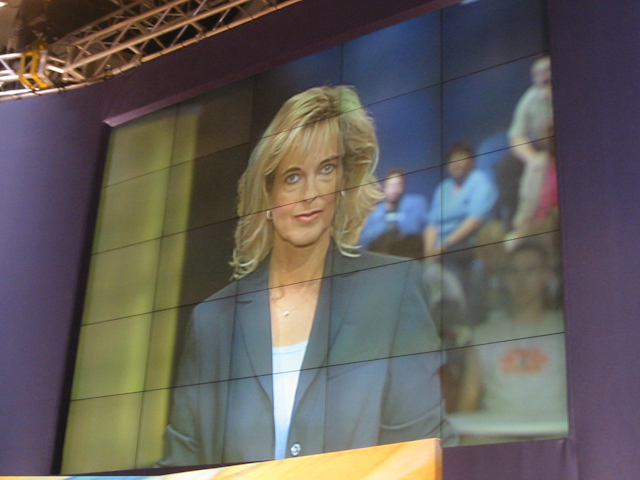 Hansi XXL: Die Großleinwand zeigt die Anchorfrau. Das Publikum tobt.