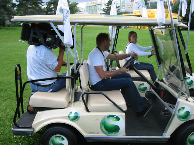 Höllen-Highway: Für einen Beitrag starten zwei Golfcaddies zu einem spannenden Verfolgungsrennen – quer durchs IFA-Gelände. Die Polizei war nicht da – oder schaute betreten weg.
