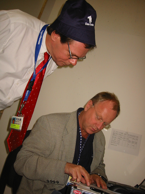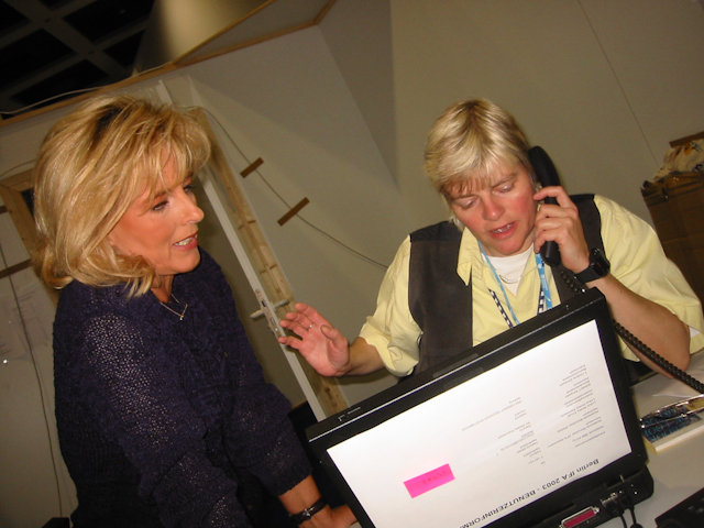Letzte Absprache: Vor der Livesendung quatschen Hansi und Gabi nochmal die Sendung durch.