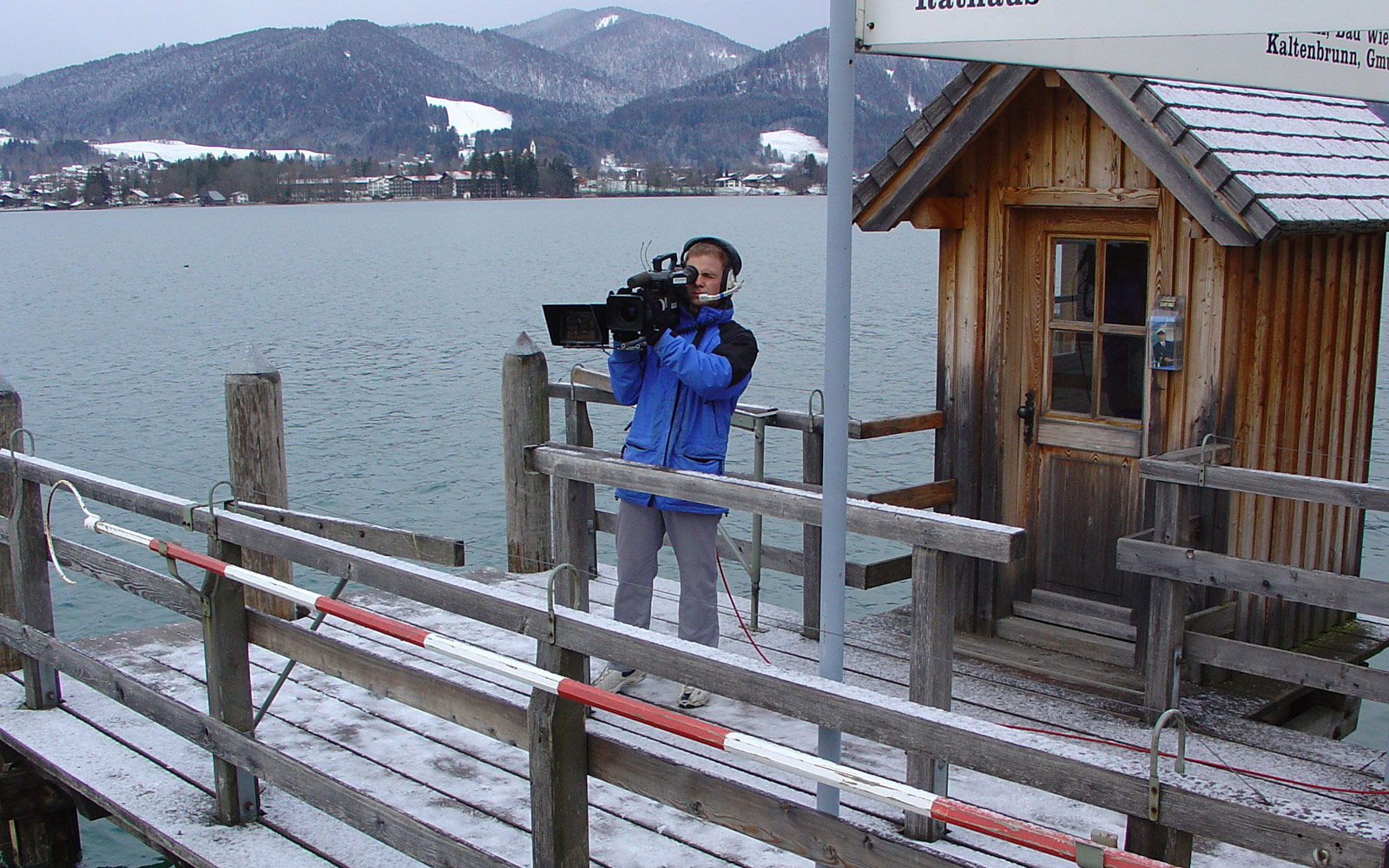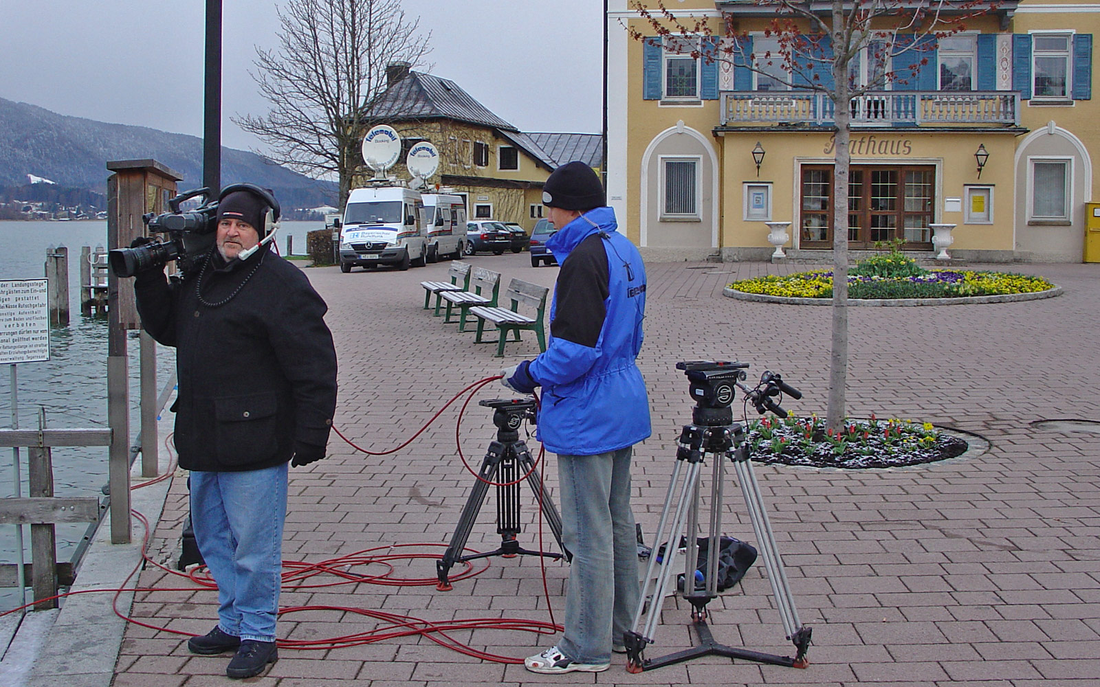 Probe mit dünner Garderobe: Scheider zittert am ganzen Leib: Eisbein, Gänsehaut und ein tiefgefrorenes Sprachzentrum. Jetzt stehen wir schon zwei Stunden in der Kälte. Dann aber gehts los. Und den weitaus härteren Job haben sicher unsere Hauptdarsteller: Die Tauchlehrer vom Tegernsee! Als wir endlich auf Sendung sind, schicken wir die Jungs ins eiskalte Wasser. Was die Crew draußen nur ahnt: Im Wasser ist es weitaus wärmer als da oben auf der Ufer-Promenade vor dem Tegernseer Rathaus! Insofern haben unsere Taucher zwar einen harten Gang vor sich, frieren aber weniger als wir vom Fernsehen…