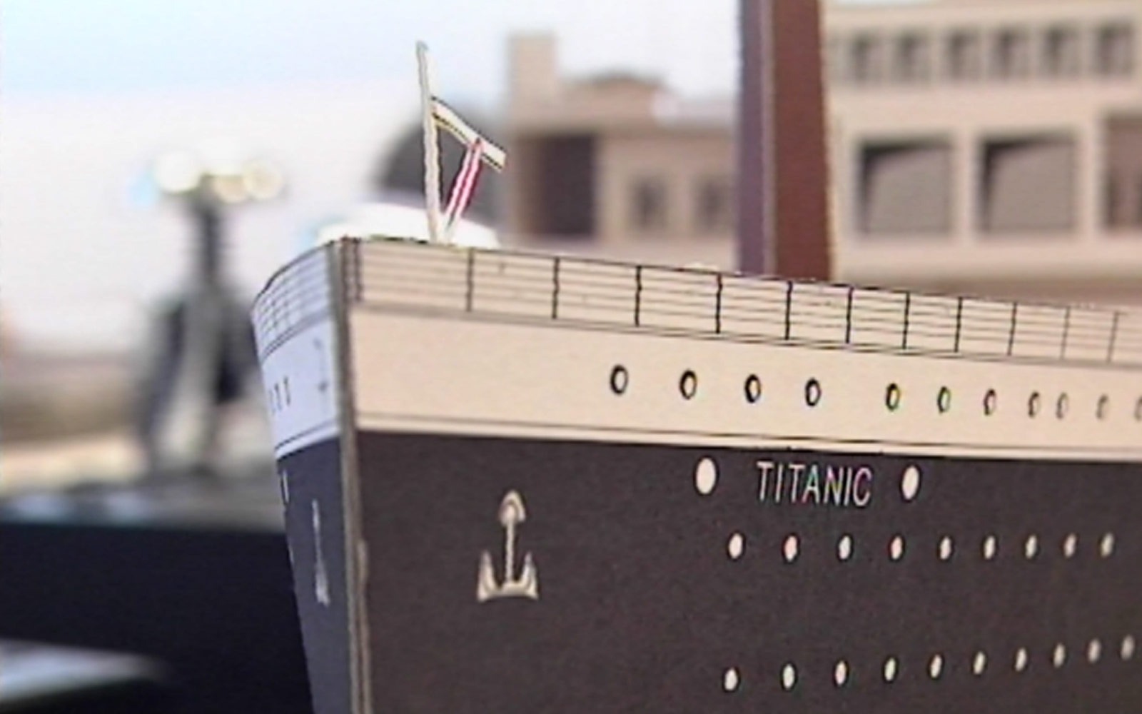Das Schiff nimmt Gestalt an! Damals 1998 schon ein Riesending mit 3D – doch heute wäre das nicht mal eine Preview! Warum? Es fehlt so ziemlich alles hier: Rauch aus dem Schornstein, Dreck an der Bordwand, Spiegelungen im Wasser undsoweiter…