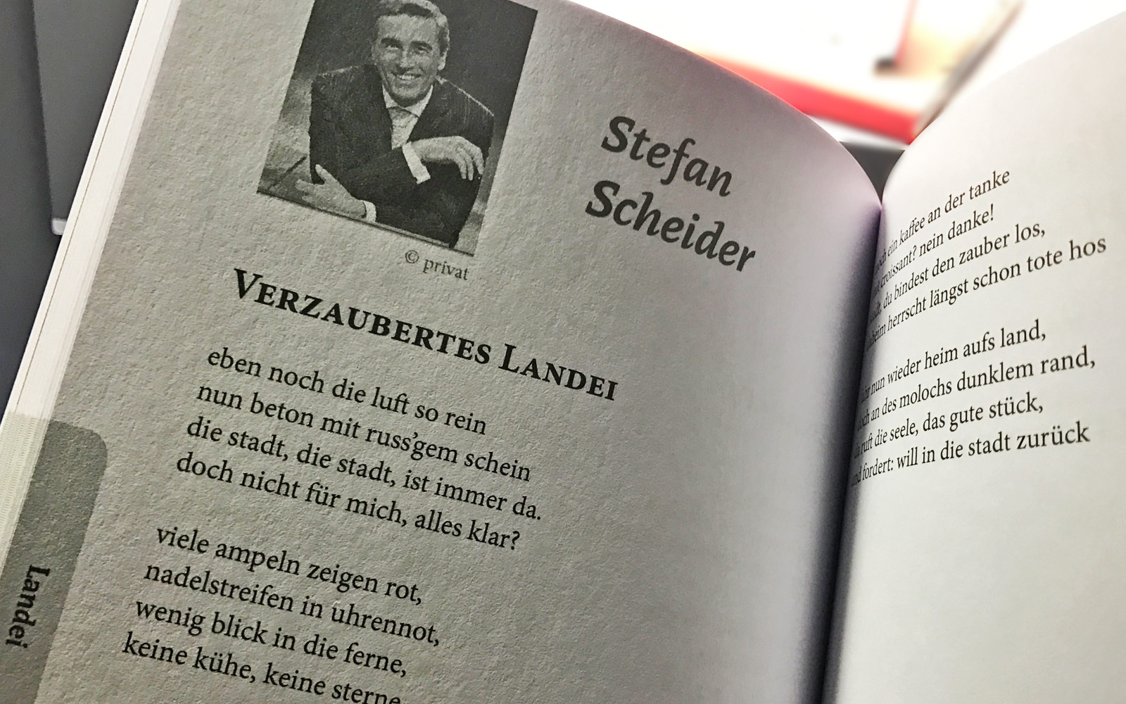 Ich muss sagen, es ist ein zauberhaftes und wunderschönes Buch. Nein, ich habe keine Aktien am Verlag und kriege auch sonst nix für jedes verkaufte Exemplar. Aber viele Gedichte liegen schon seit 20 Jahren in der Schublade, andere entstanden während einer U-Bahnfahrt. Und Scheider hat auch zwei Seiten darin. Eine Liebeserklärung an die Stadt von einem Landei…