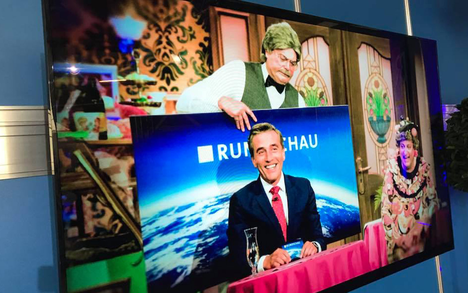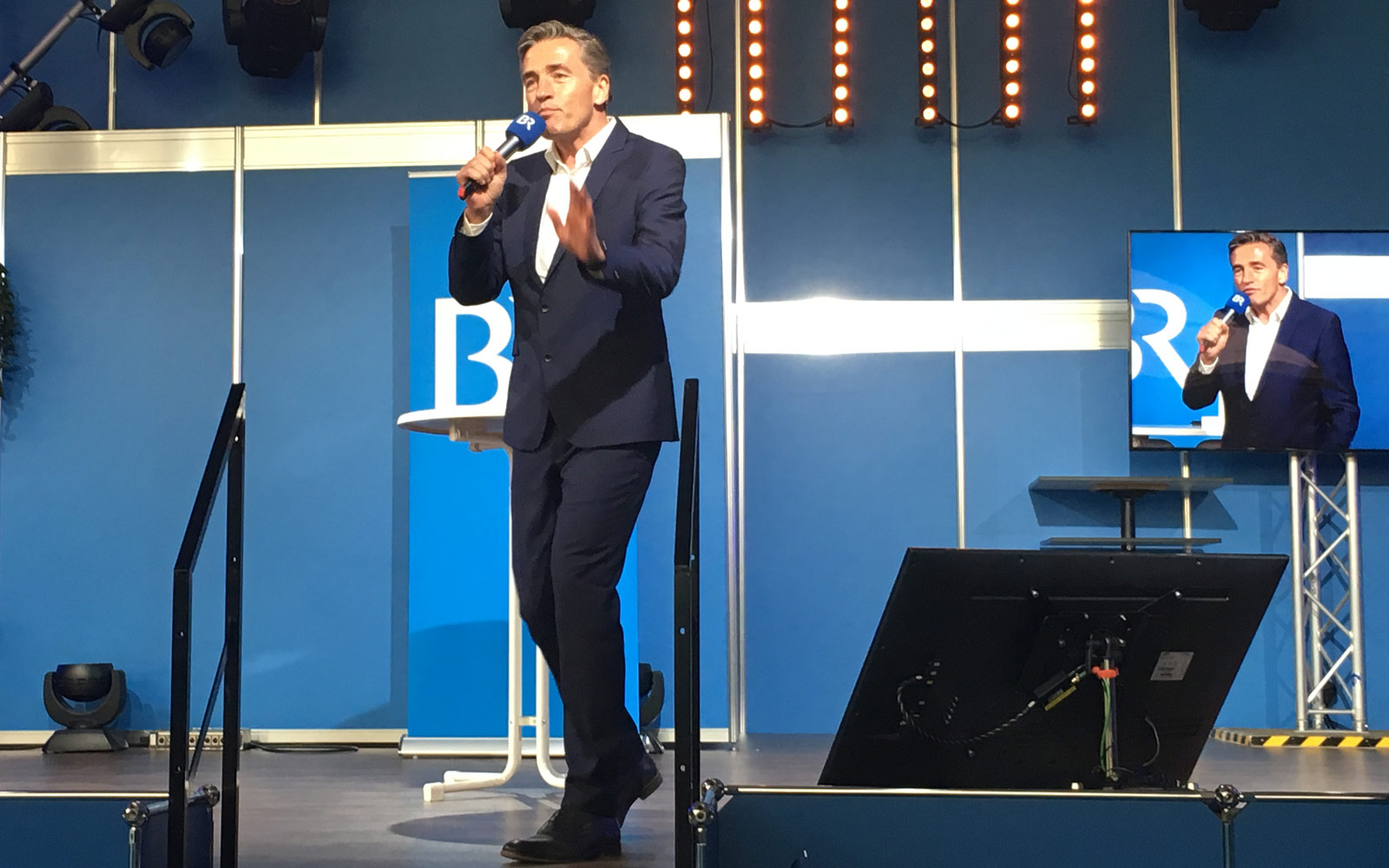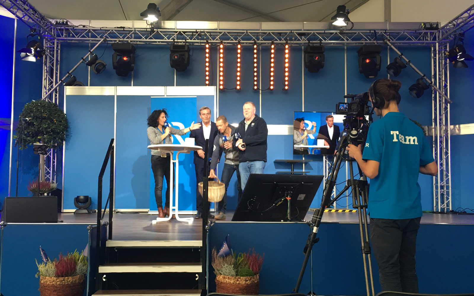 Endlich wieder unterfränkisches Flair – nach der Premiere auf der Mainfrankenmesse 2016! Stefan erzählt dem Publikum von der Rundschau und seinen neuen Robotern. Und dann ein kleines Spielchen: Der Auftritt aus der „Tortenschlacht“ mit Waltraud & Mariechen – hier können Zuschauer jetzt ebenfalls die Rundschau auf fränkisch vortragen! Gar nicht leicht – aber sie haben es gerockt!