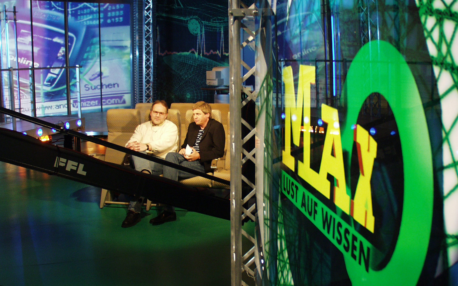 April 2000. Das Internet ist noch sooo jung. Aber Scheider schon sooo aktiv. Deswegen darf er auch Filmbeiträge und Konzepte für diese Ausgabe von MaxQ gestalten. MaxQ – das ist die Wissenschaftssendung im BR moderiert von einem deutschen Astronauten (der seinen Job exzellent macht): Ulrich Walter! Am 27. April 2000 um 8 Uhr morgens laufen alle im Studio ein – die Endfertigung kann beginnen für die Sendung am 11.6.2000 um 15.30 Uhr im BFS!