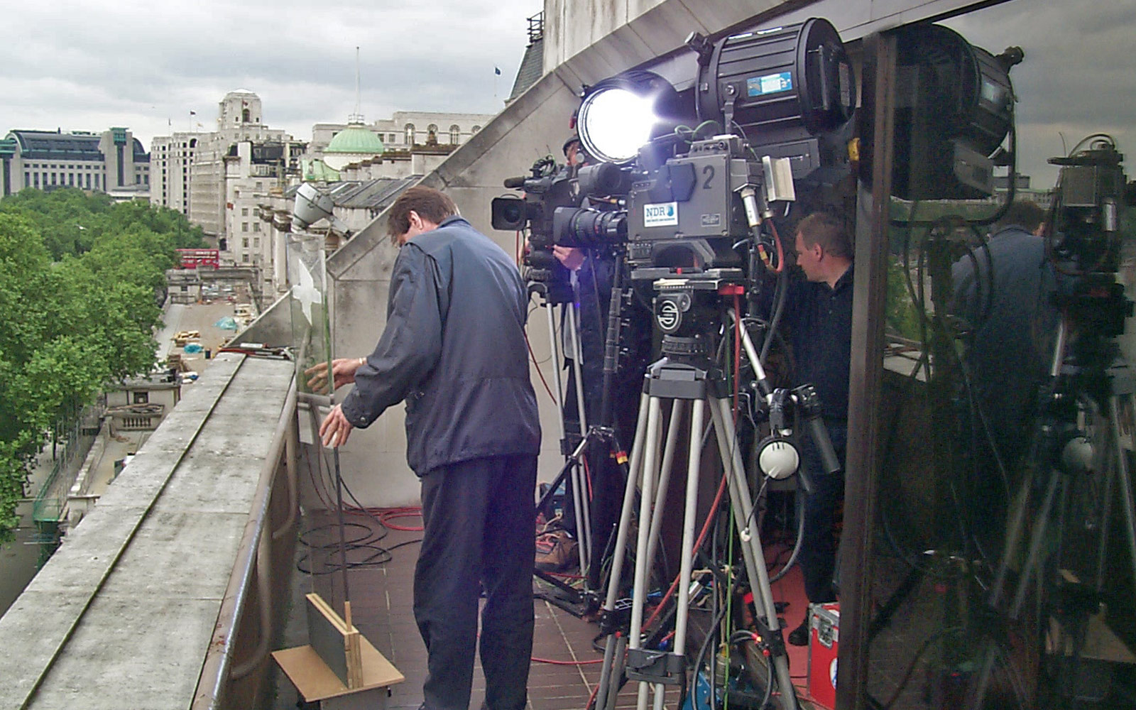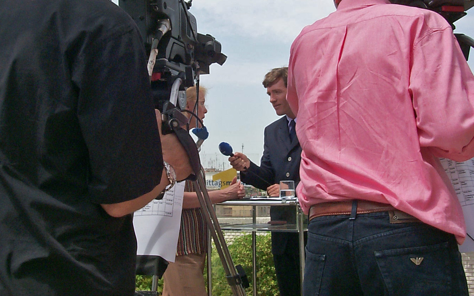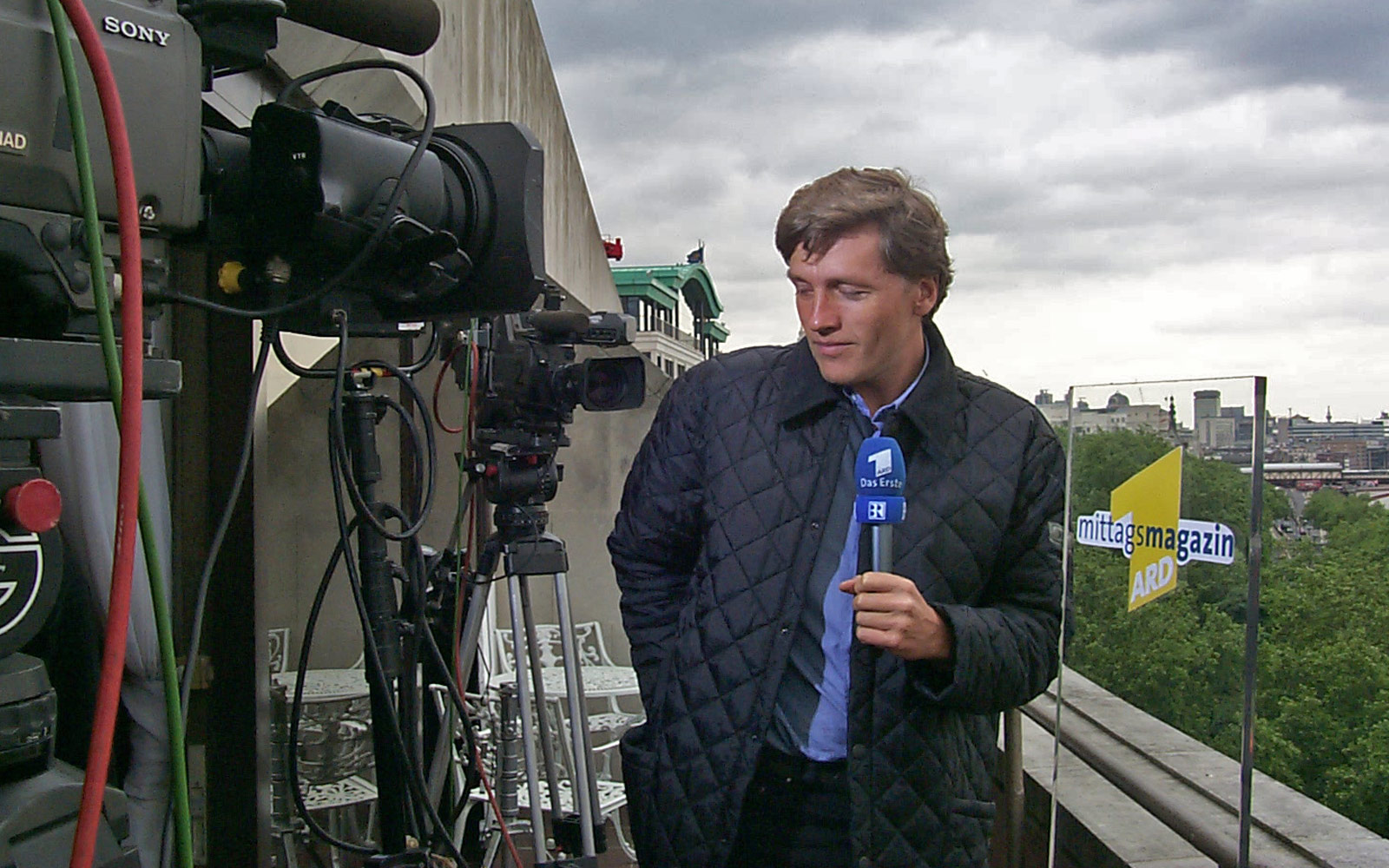 Kleine Verschnaufpause auf dem Dachbalkon des ARD-Studios.