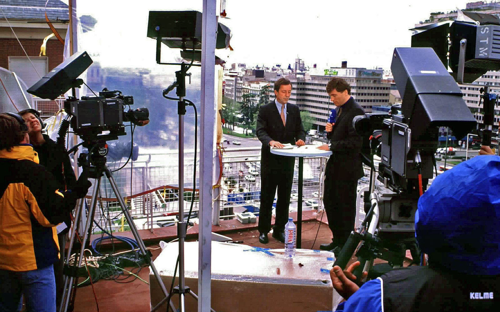 Erste Station unserer Europa-Tour: Die spanische Hauptstadt Madrid! Über dem Kolumbusplatz senden wir täglich eine Viertelstunde nach Deutschland! Übrigens: Hier fotografiert Stefan noch mit Diafilm – für alle späteren Stadttrips setzt er seine erste Digitalkamera ein – die Kodak D260. Leider sieht man das auch – aus heutiger Sicht machte das Teil ziemlich grottige Bilder…