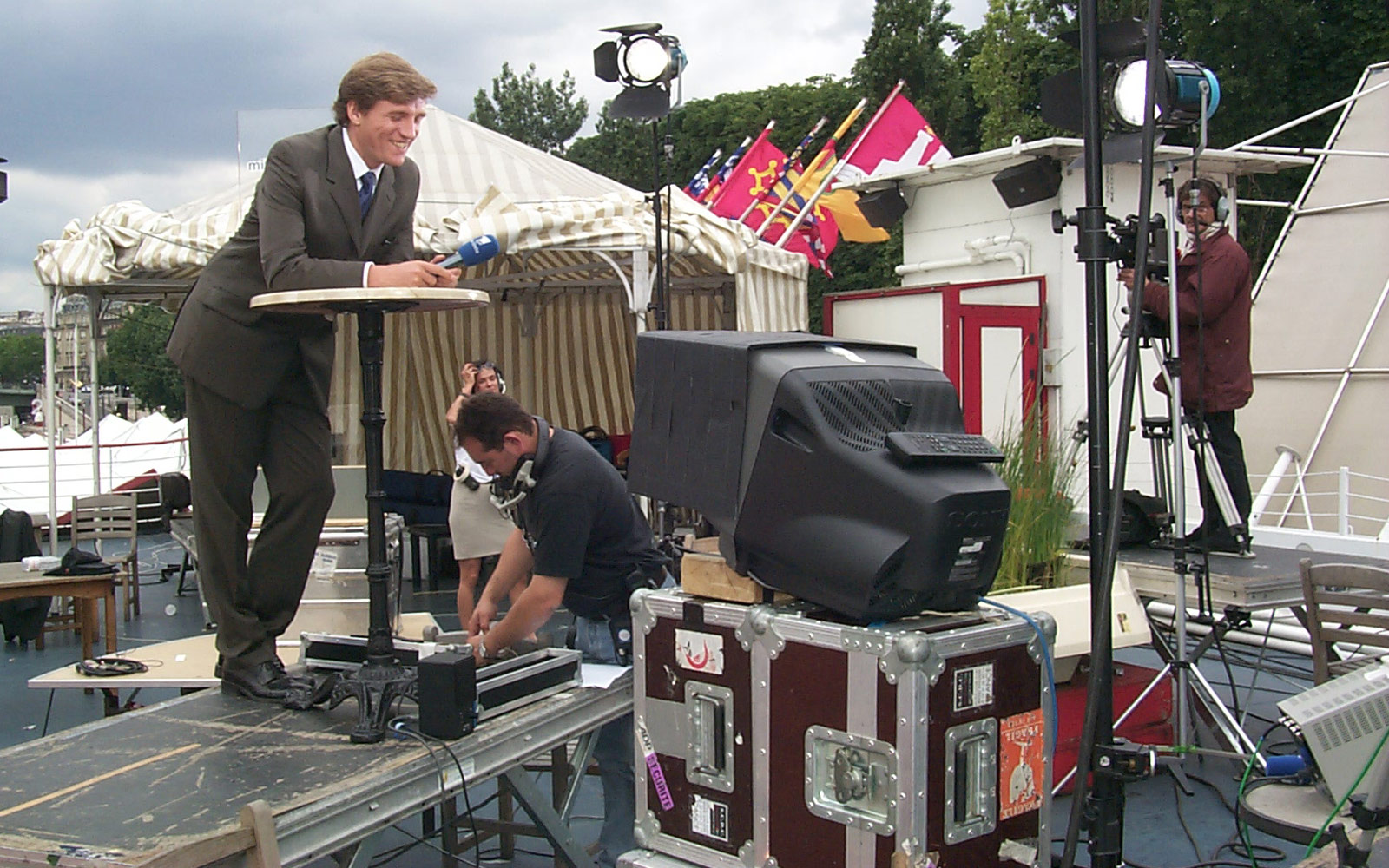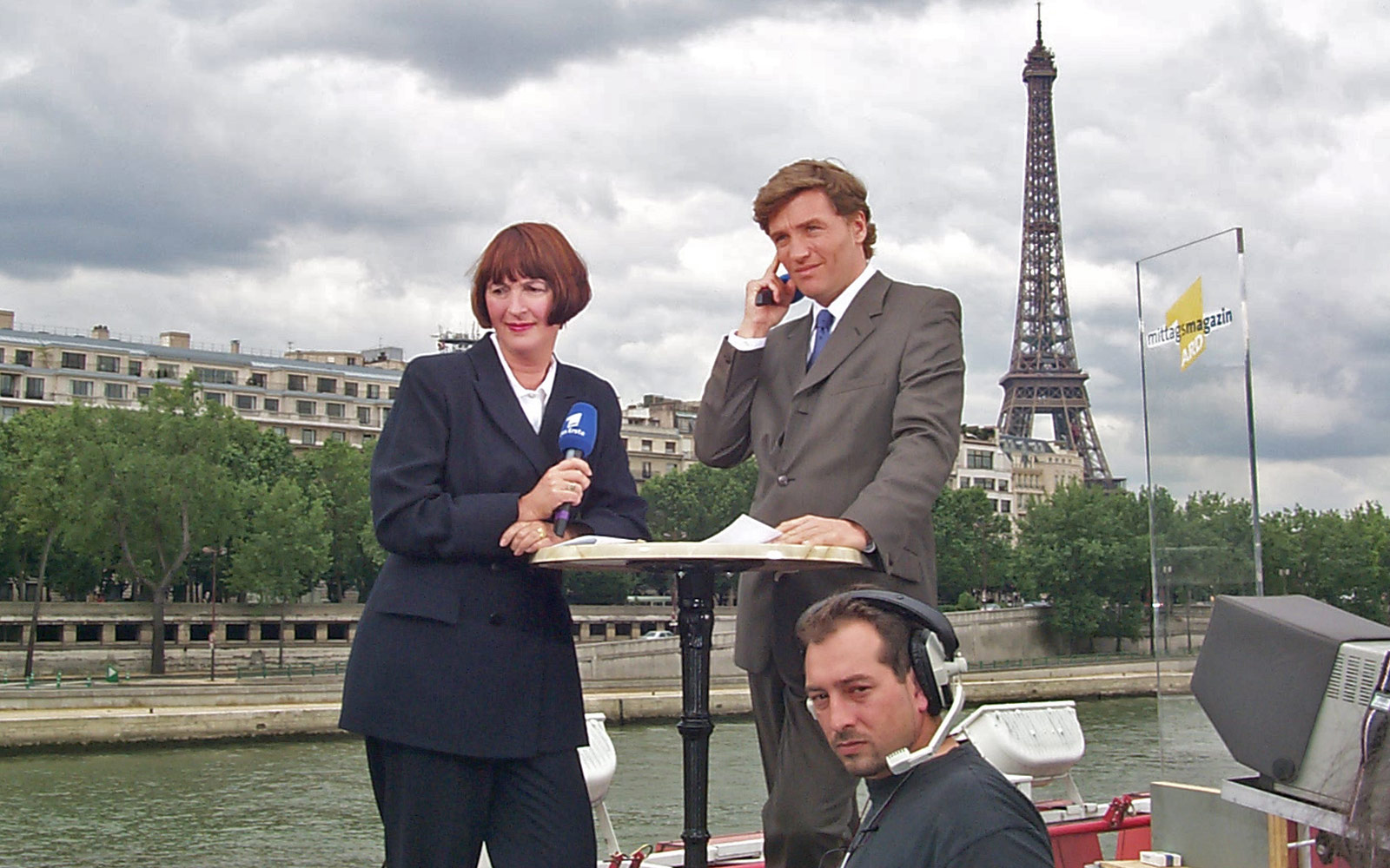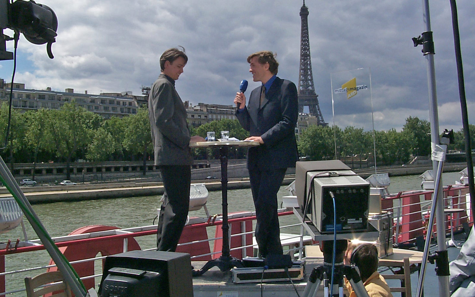Das ARD Mittagsmagazin macht Station in Paris vom 7. bis 11. Juni 1999. Täglich 15 Minuten live aus der französischen Hauptstadt vom Schiff aus (Bateaux Mouches). Und immer im Blick: Der Eiffelturm! Leider mit ihm auch immer mal ein paar Regenwolken. Es wird ein stürmisches Unterfangen. Impressionen & Infos einer Live-Außenübertragung.